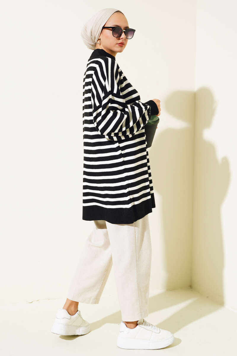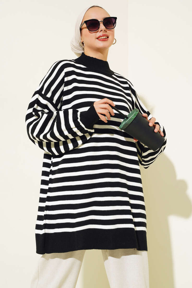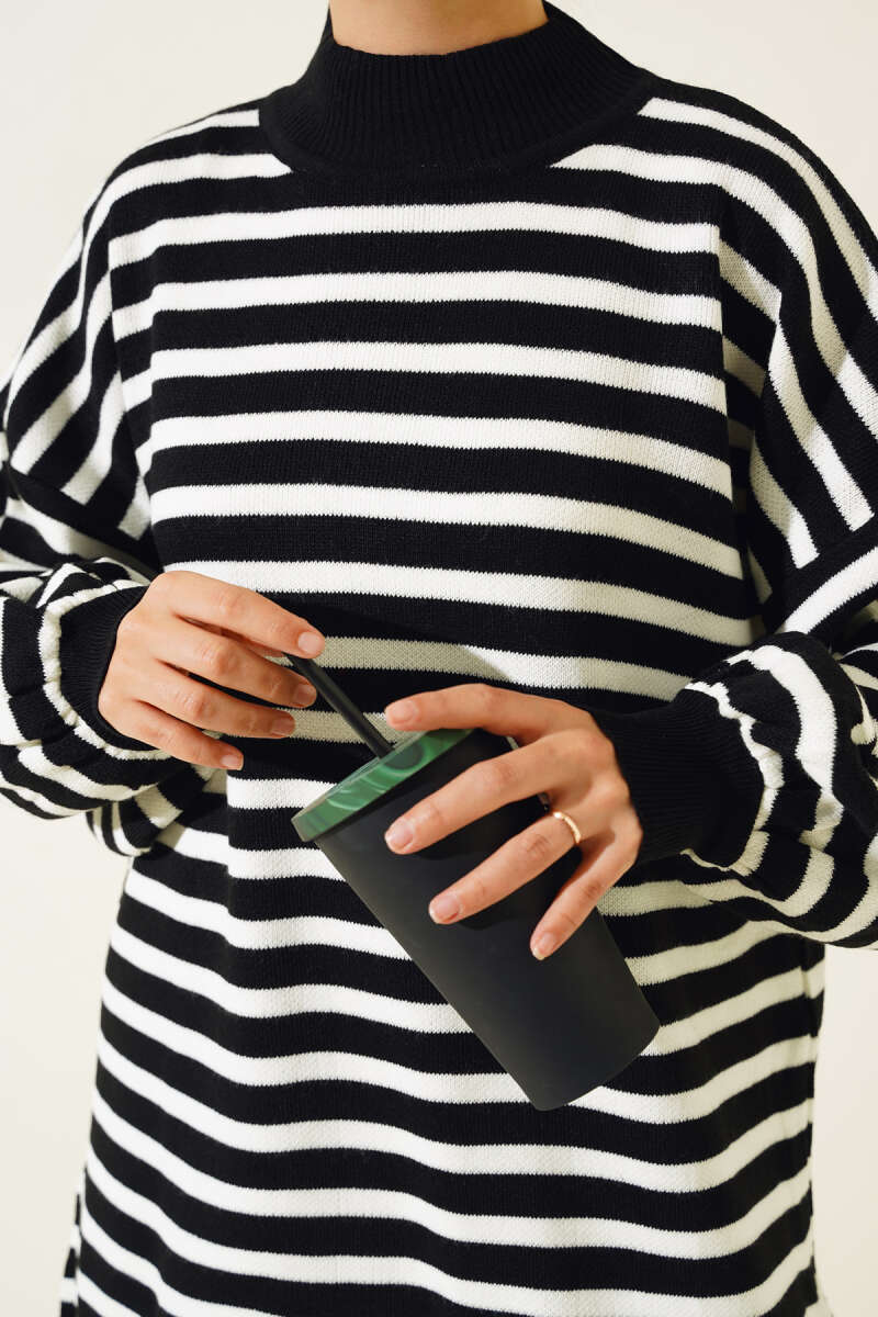 Salaş Bisiklet Yaka Simli Triko Tunik Siyah