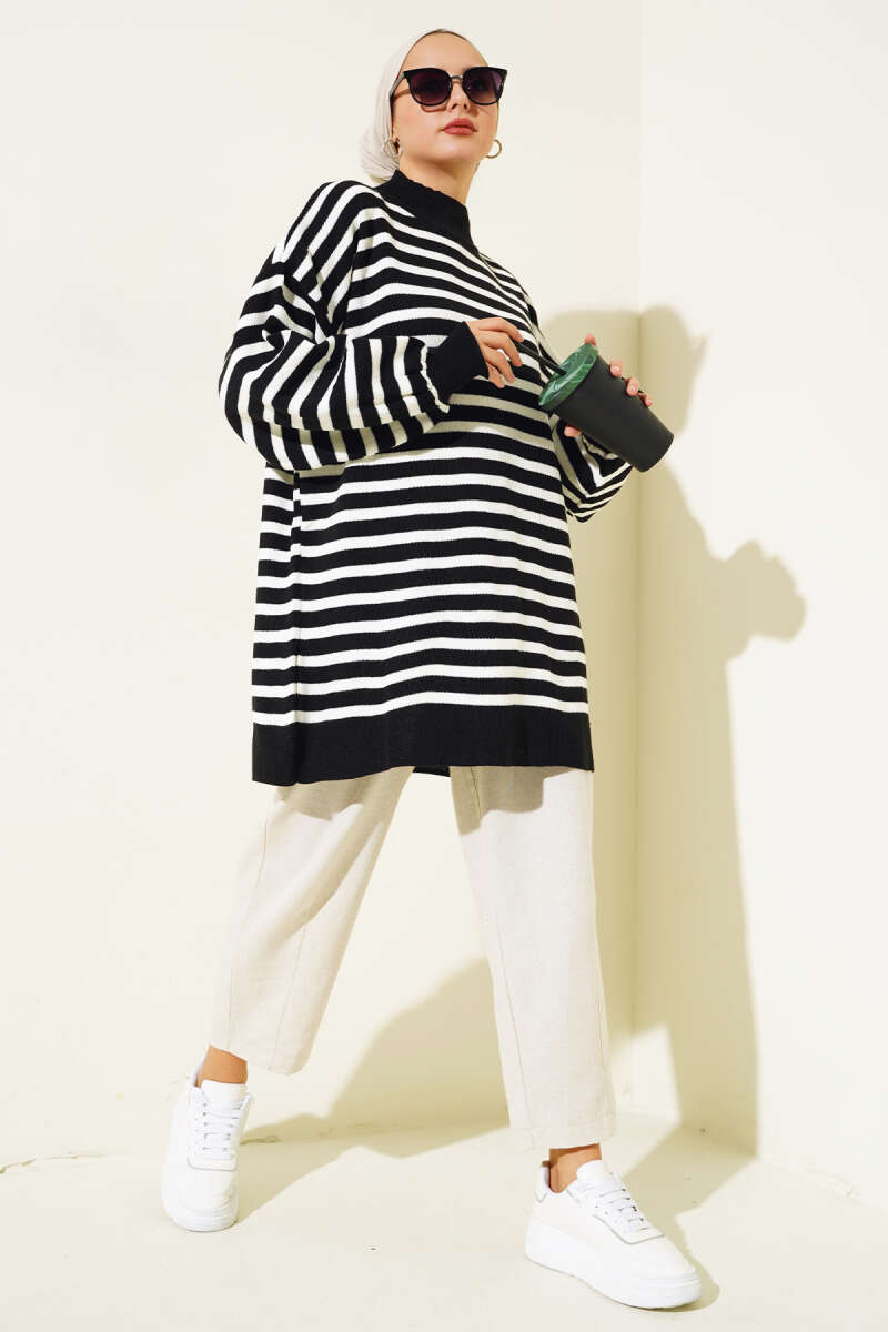 Salaş Bisiklet Yaka Simli Triko Tunik Taş