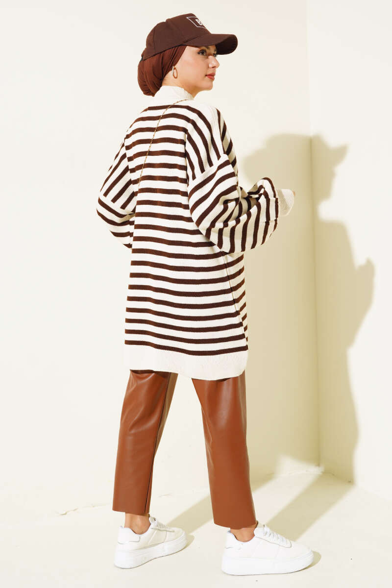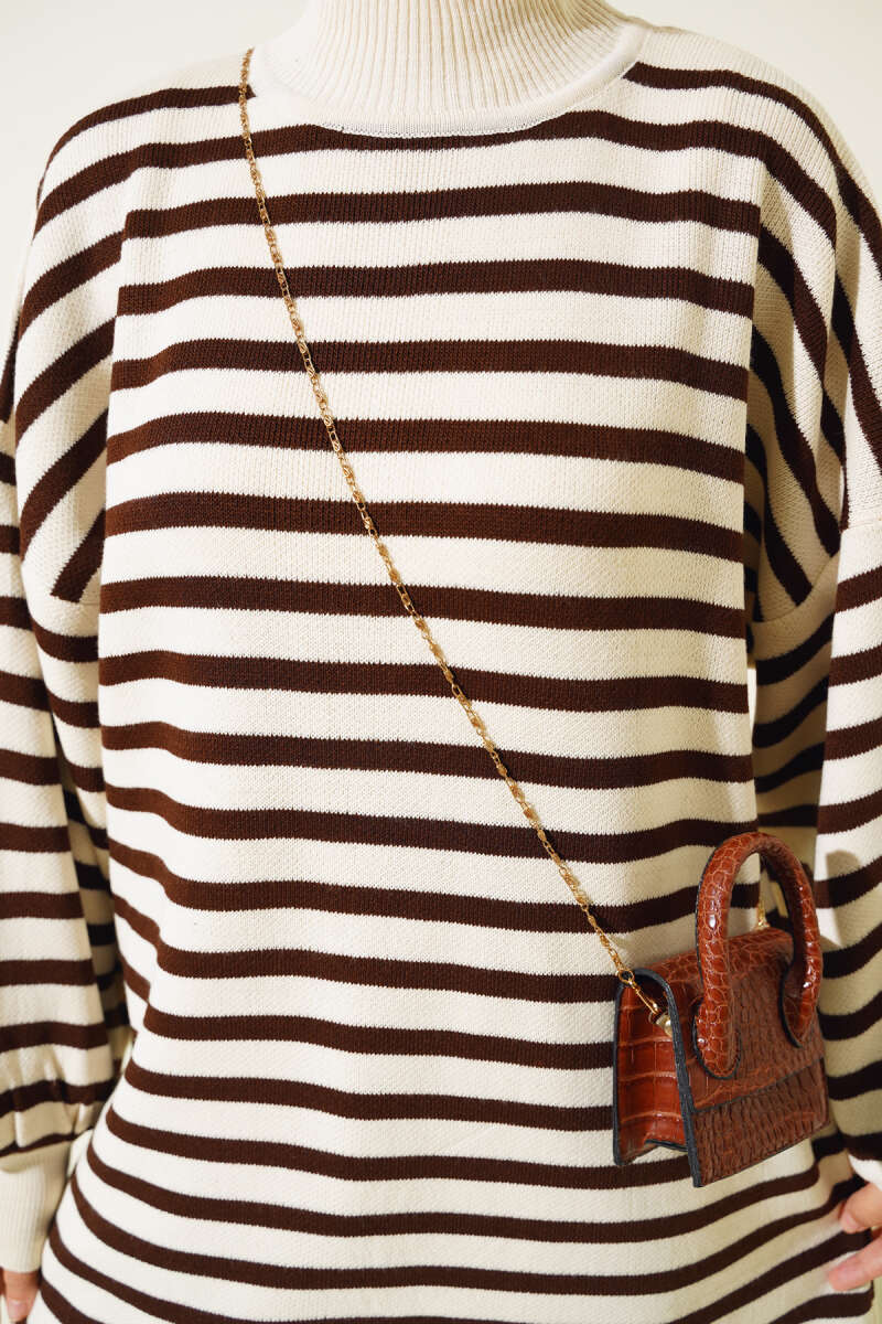 Salaş Bisiklet Yaka Simli Triko Tunik Kahve
