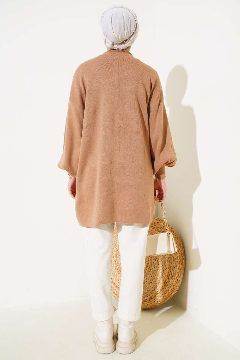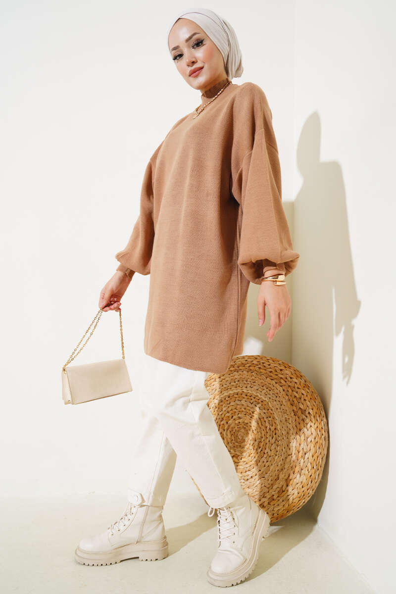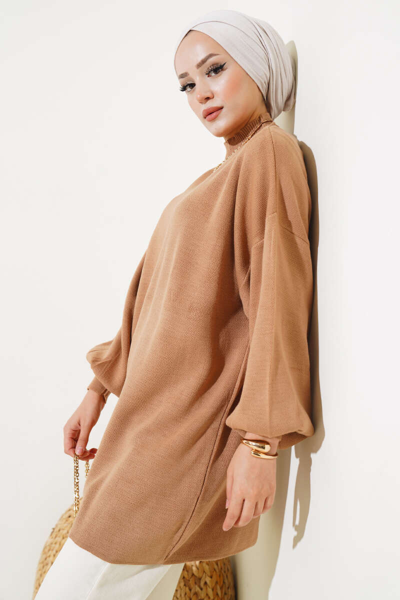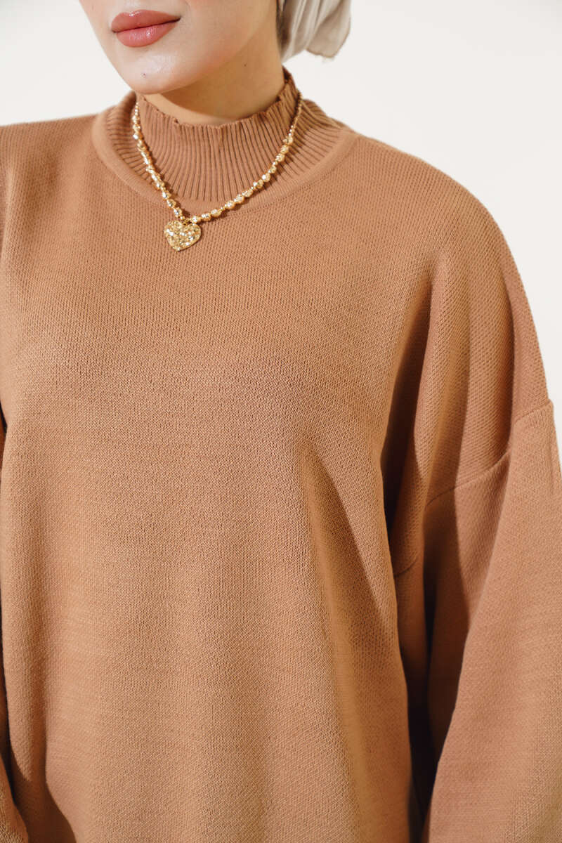 Yatay Çizgi Detaylı Basic Triko Tunik Kahve