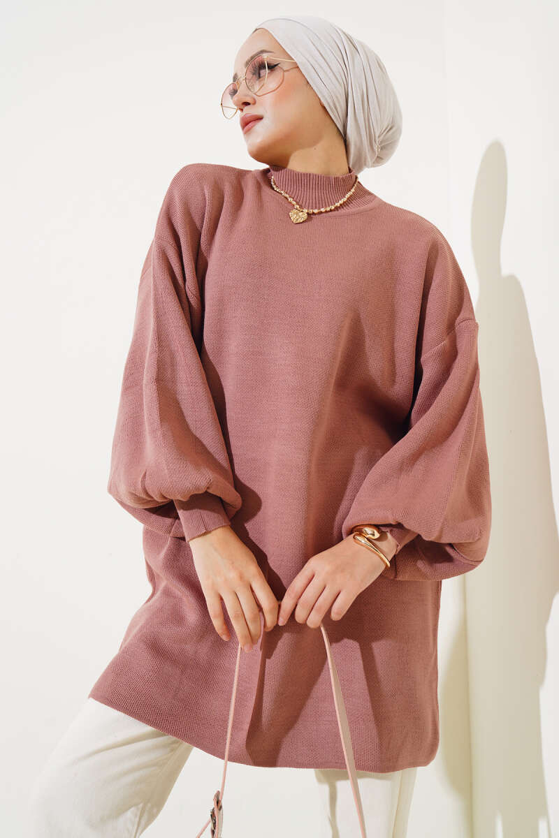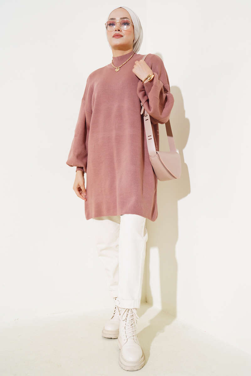 Örgü Kabartmalı Yumoş Triko Tunik Latte