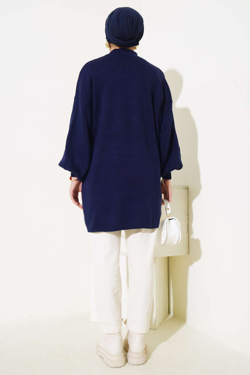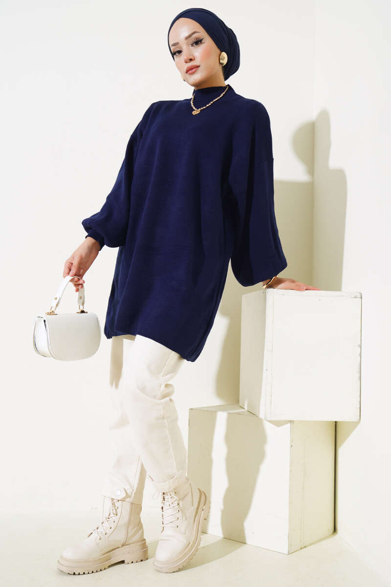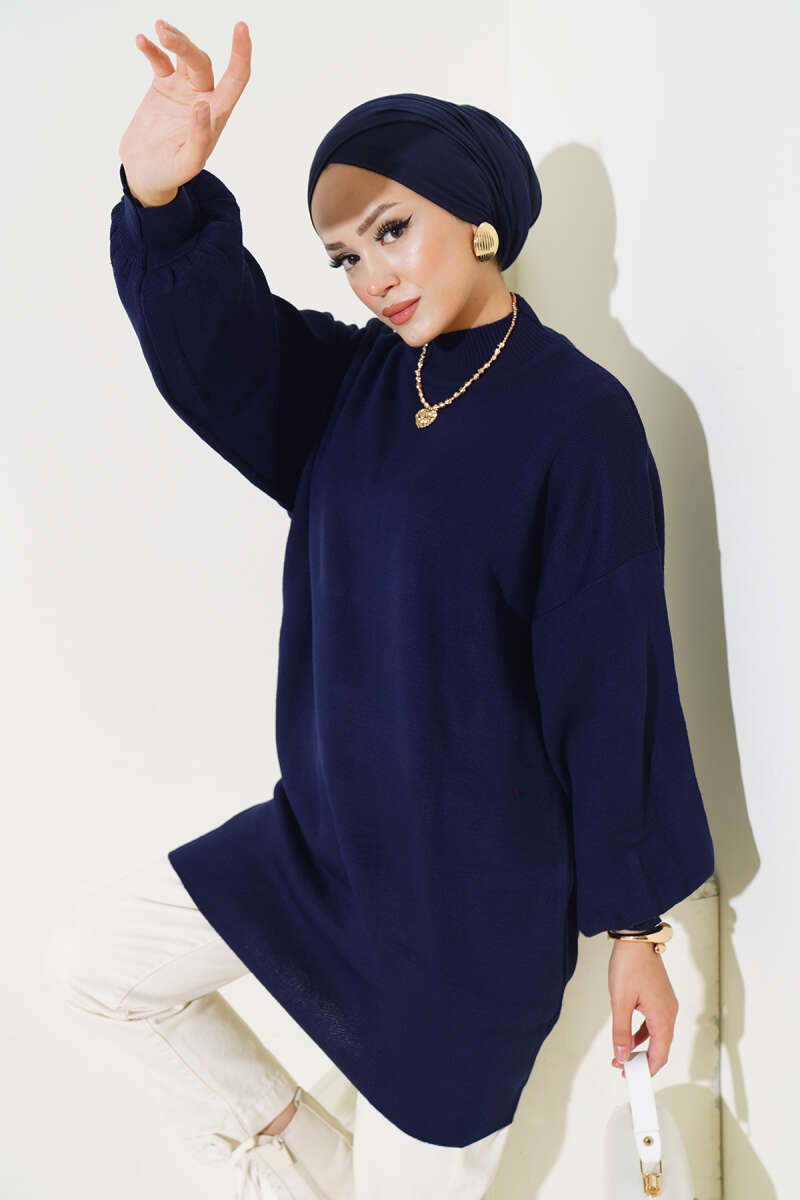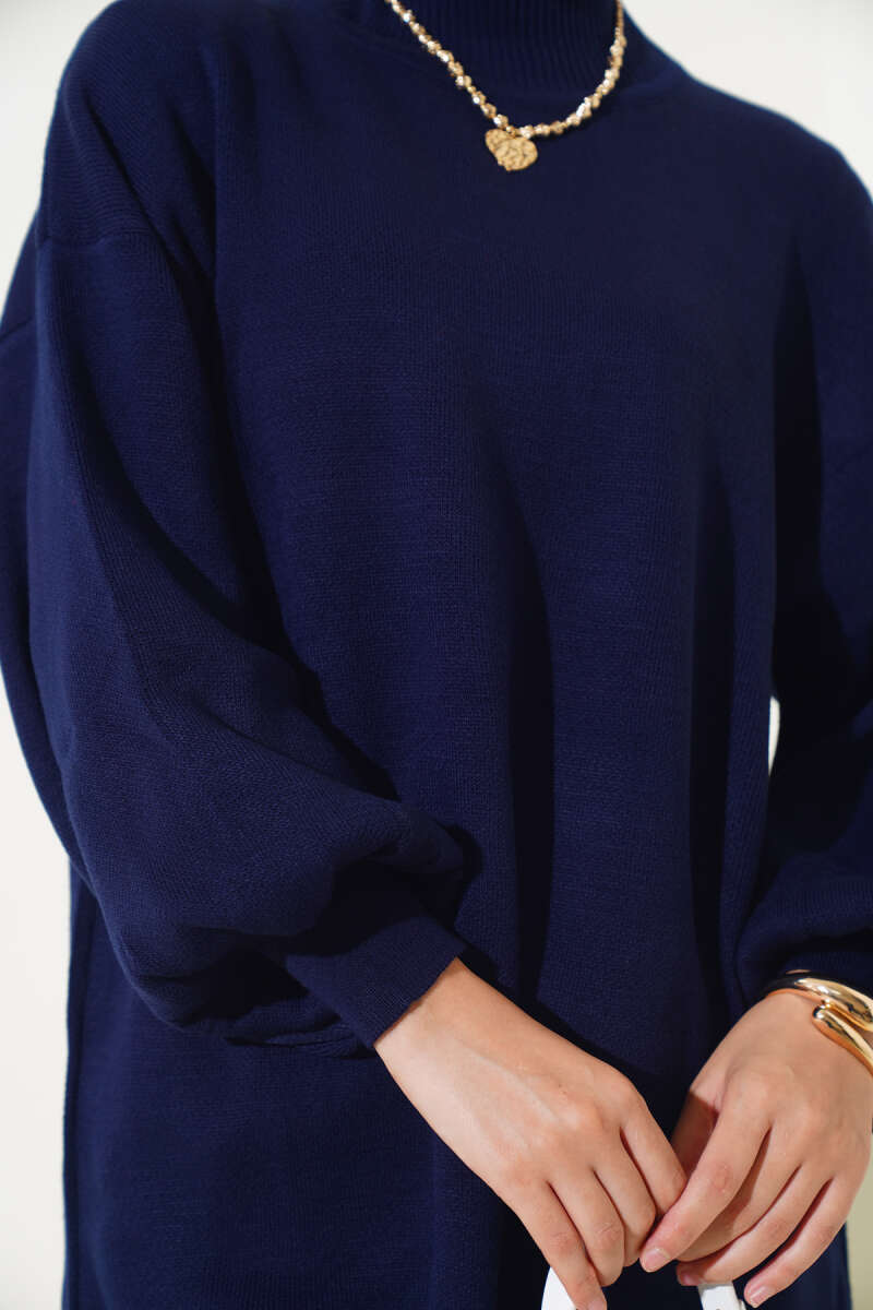 Çizgi Baklava Desen Triko Tunik Lacivert