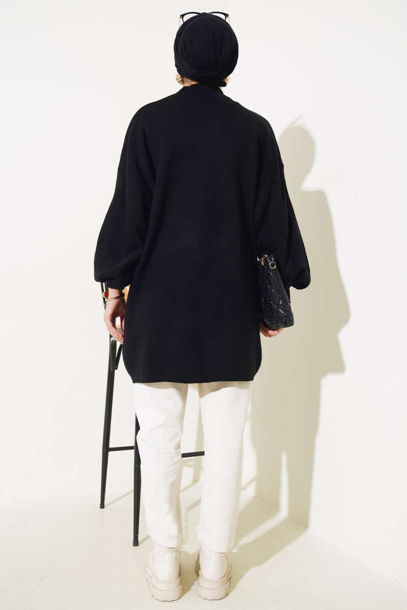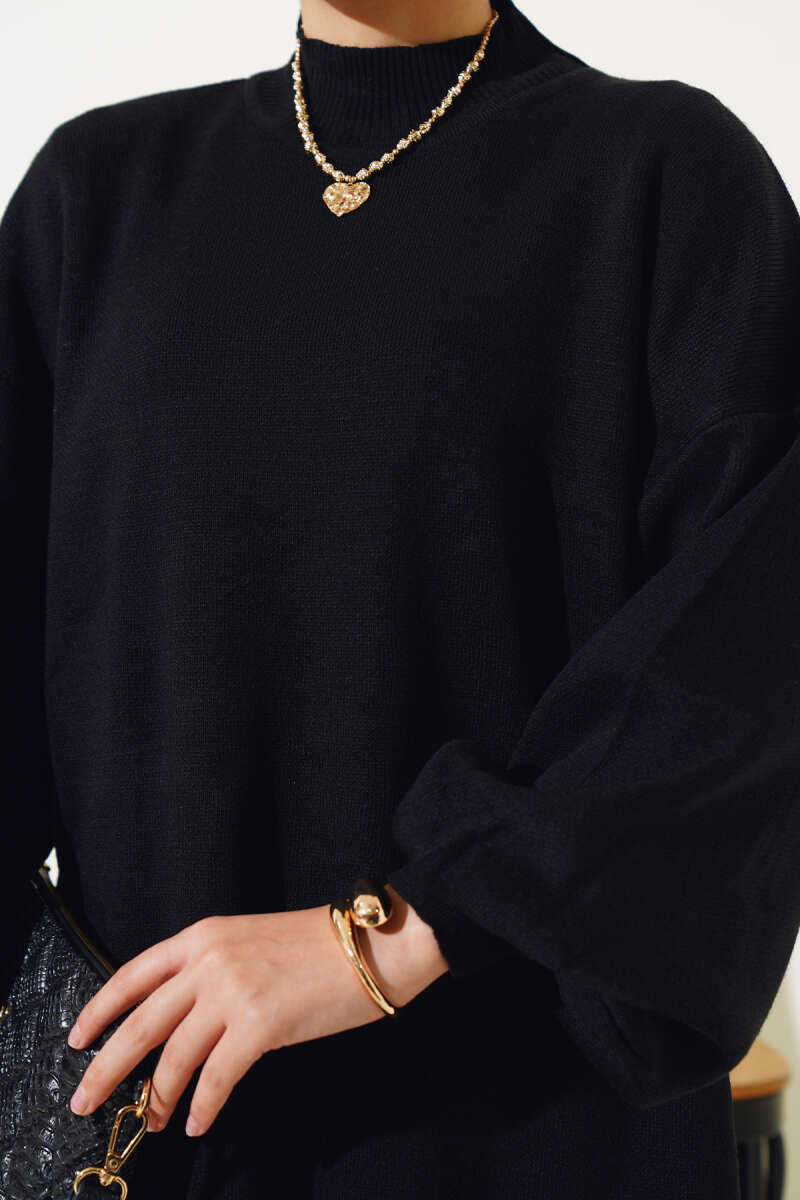 Baklava Kabartmalı Yumoş Triko Tunik Siyah