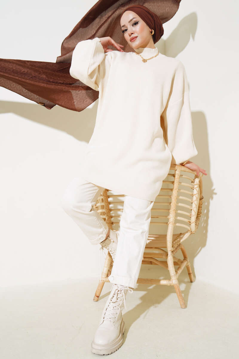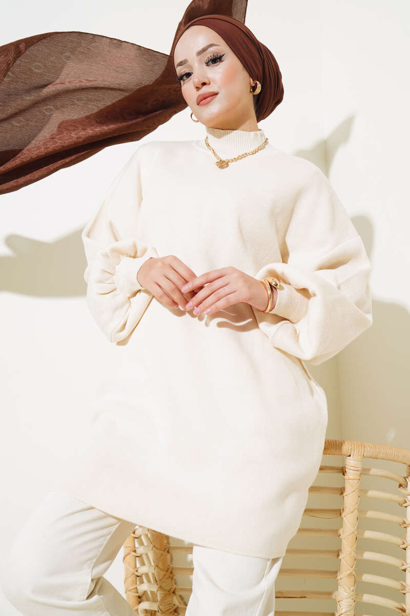 Balon Kol Dik Yaka Triko Tunik Taş