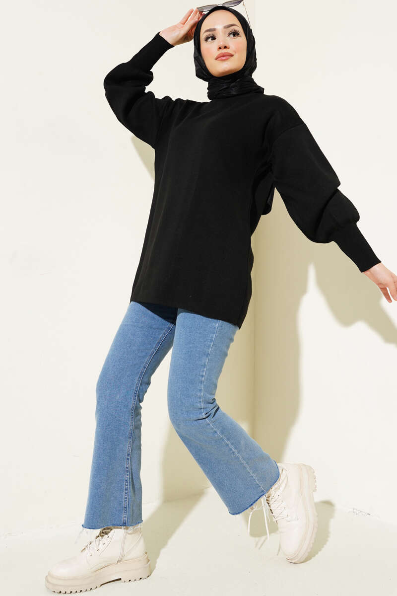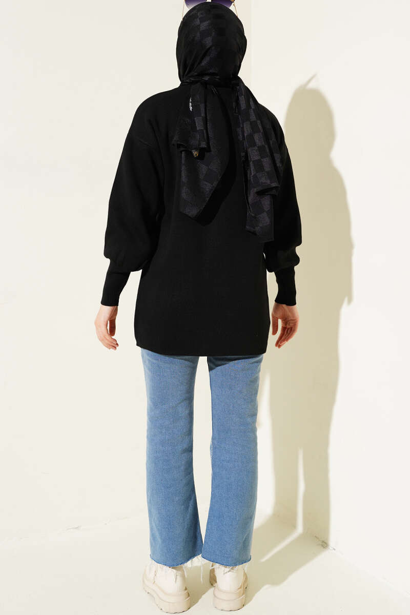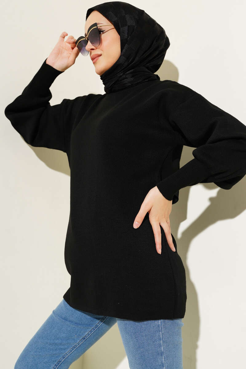 Pötikareli Yanları Büzgü Detay Siyah Tunik
