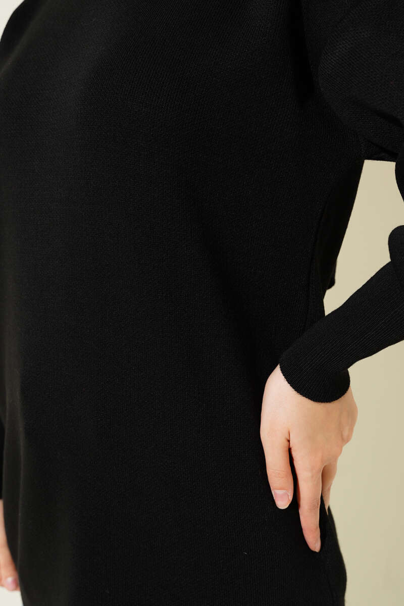 Yatay Çizgi Detaylı Basic Triko Tunik Siyah