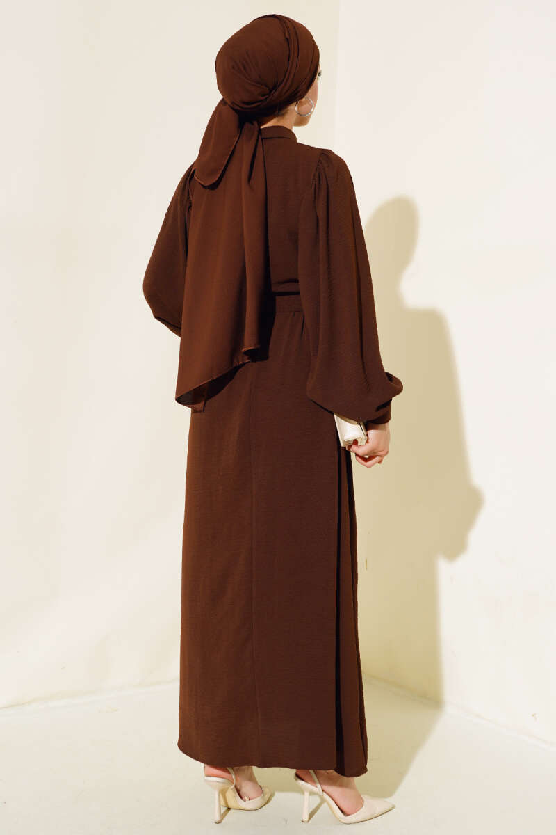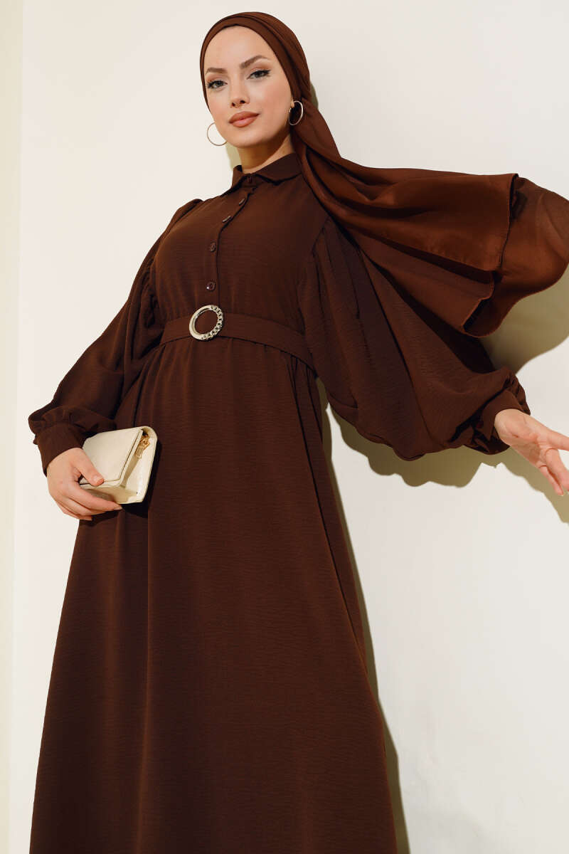 Balon Kol Gömlek Yaka Elbise Acı Kahve