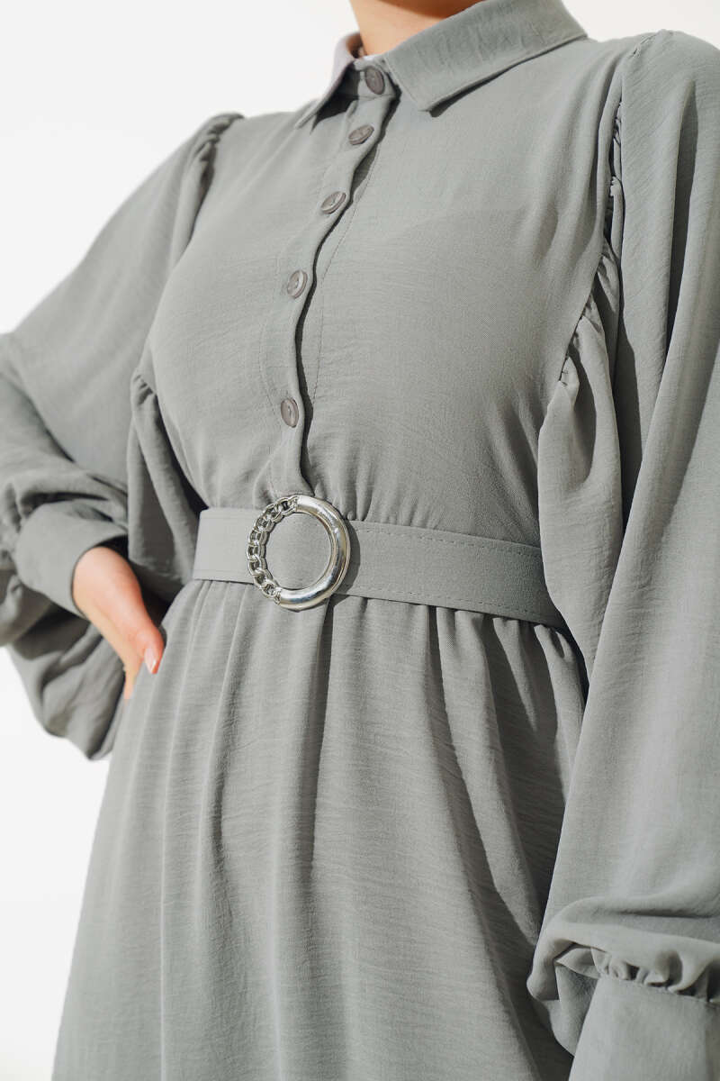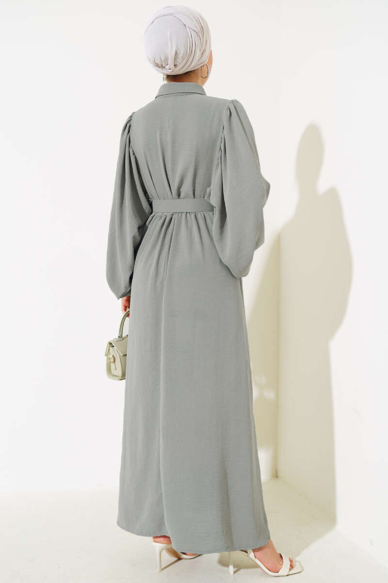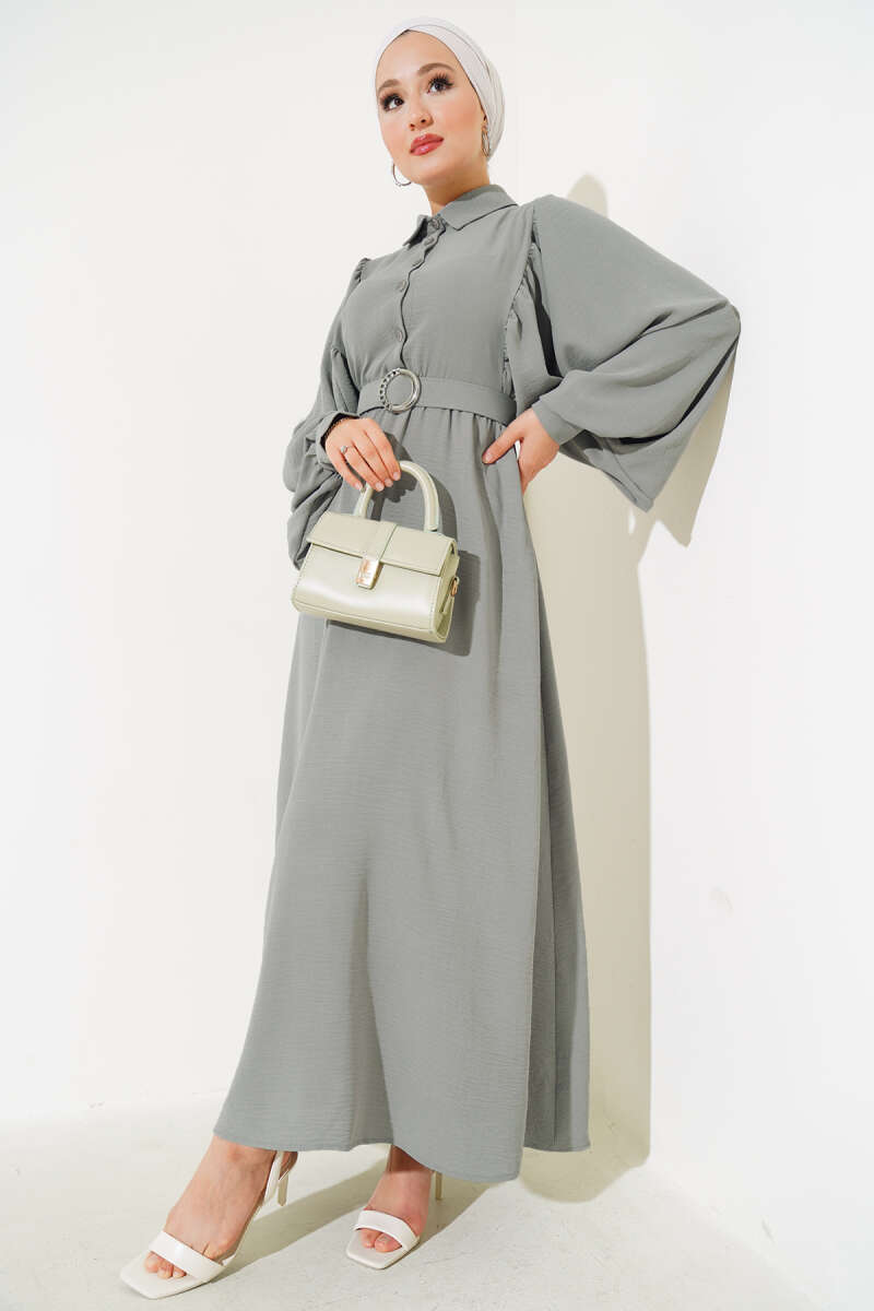 Saç Örgü Kabartmalı Triko Elbise Haki