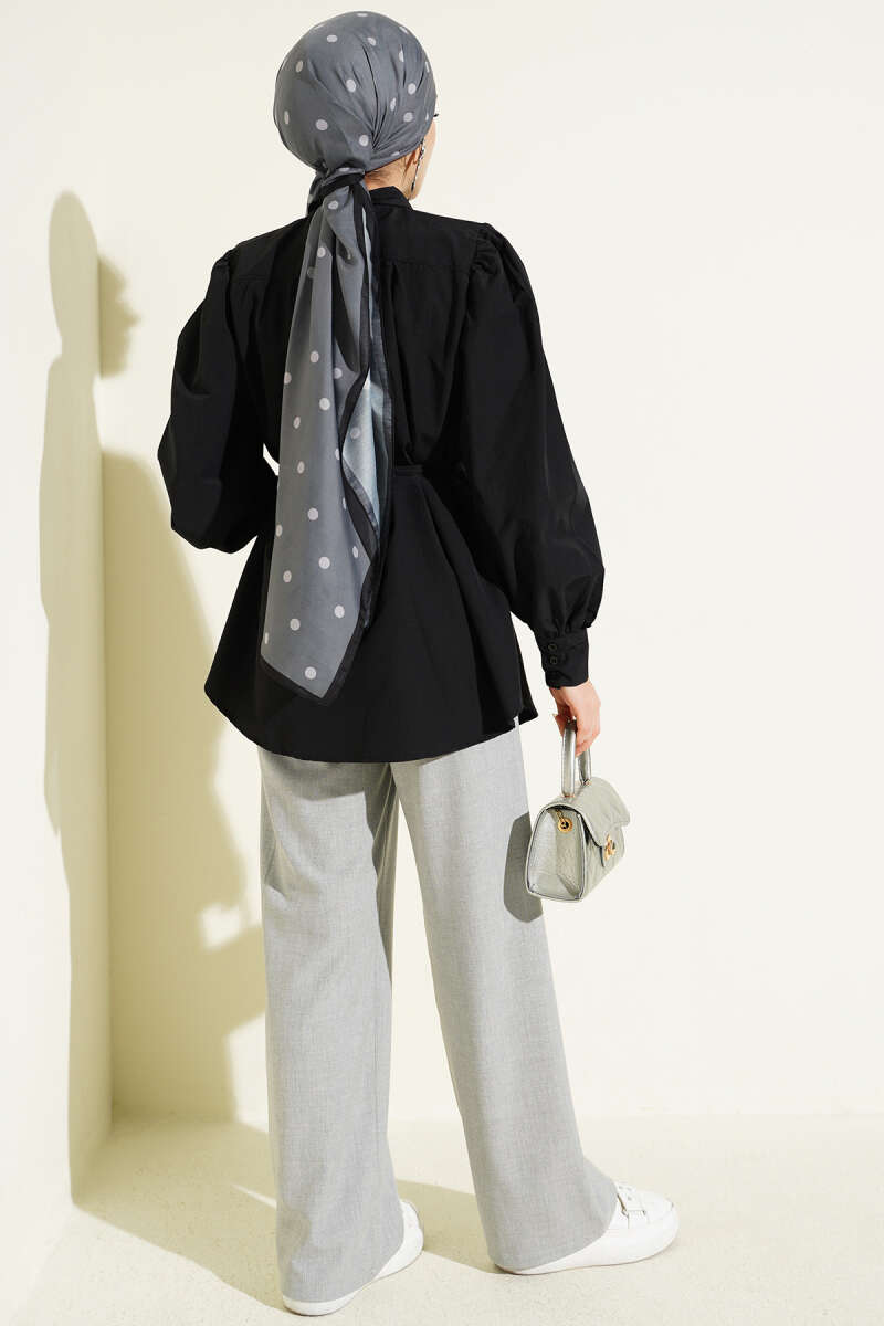 Bilek Yırtmaçlı İpli Loyşa Tunik Siyah