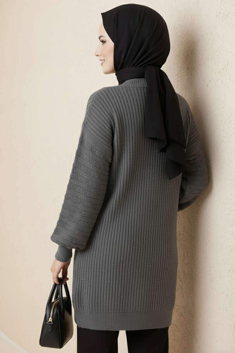 Tek Cep Örgülü Uzun Triko Tunik Taş