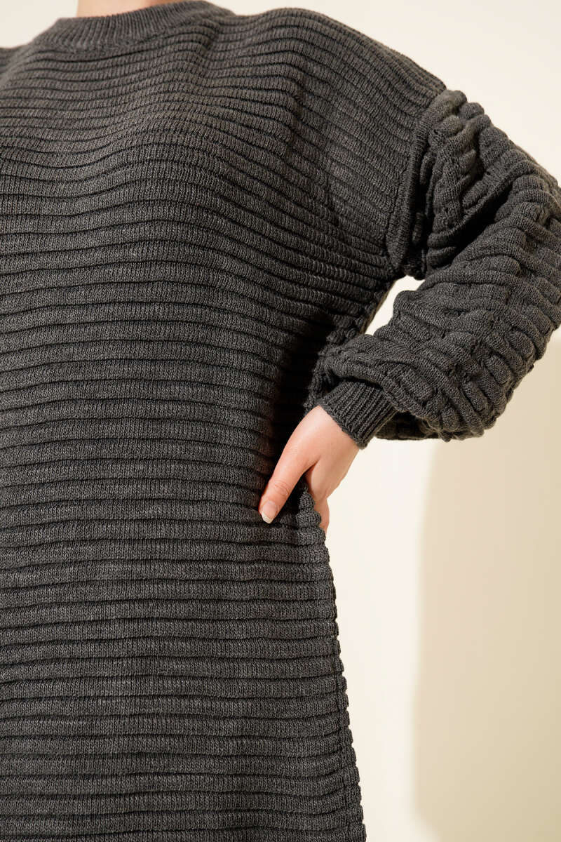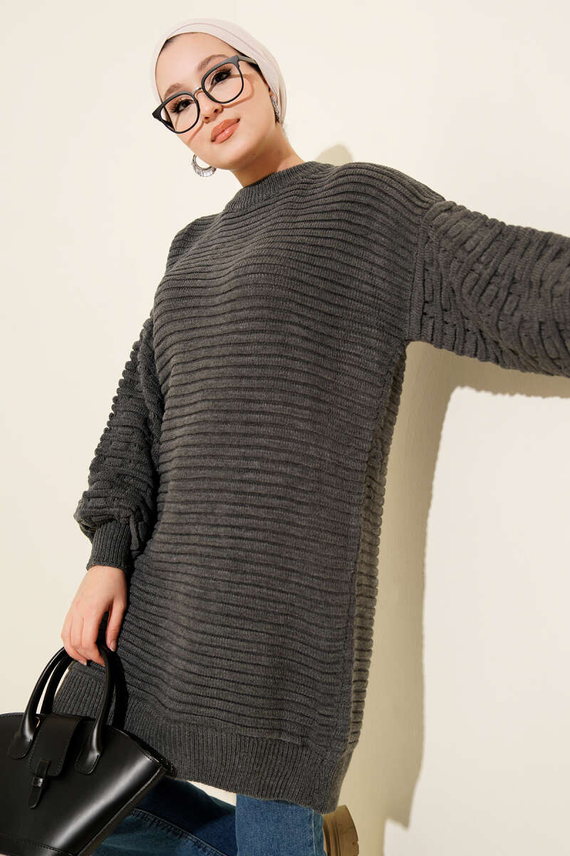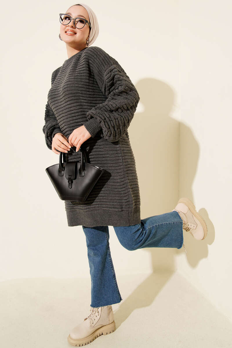 Selanik Örgü Yumoş Triko Tunik Füme