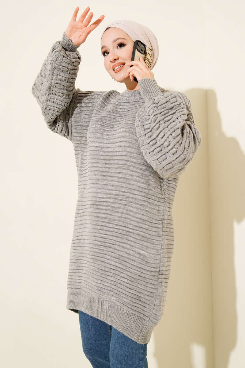 Gömlek Yaka Fularlı Triko Tunik Füme
