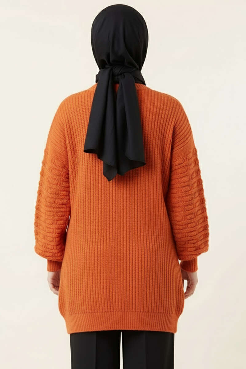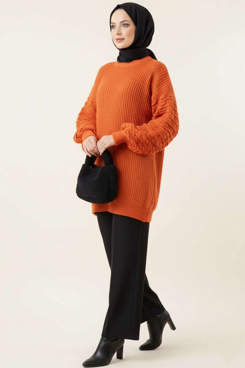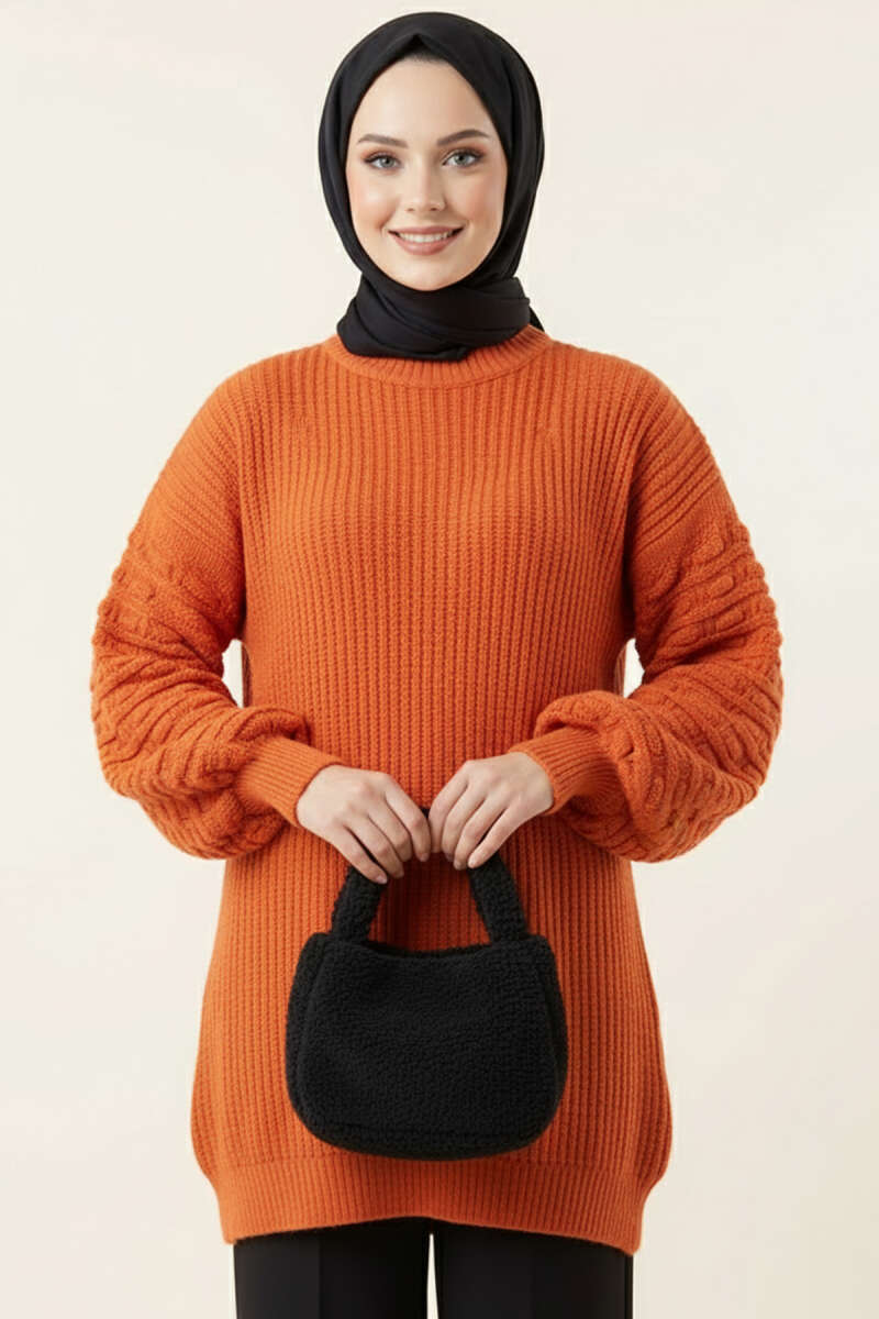 Balon Kol Kabartmalı Triko Tunik Oranj