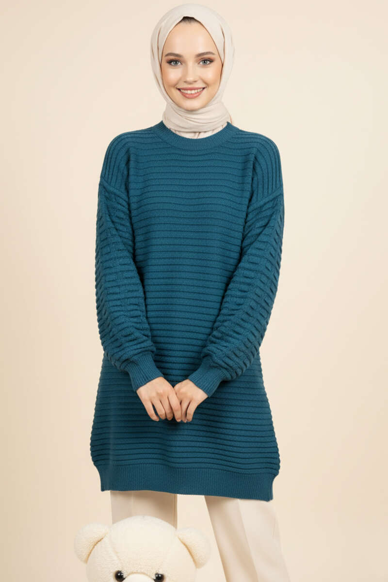 Balon Kol Kabartmalı Triko Tunik Bej