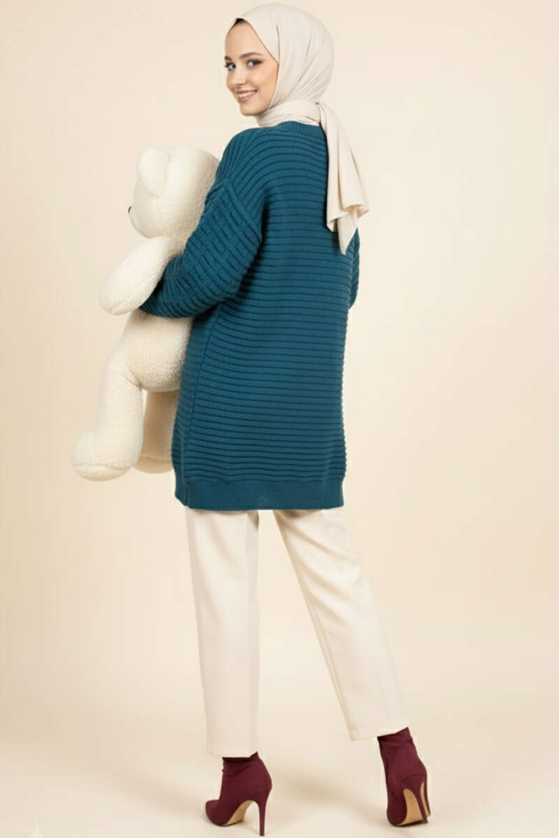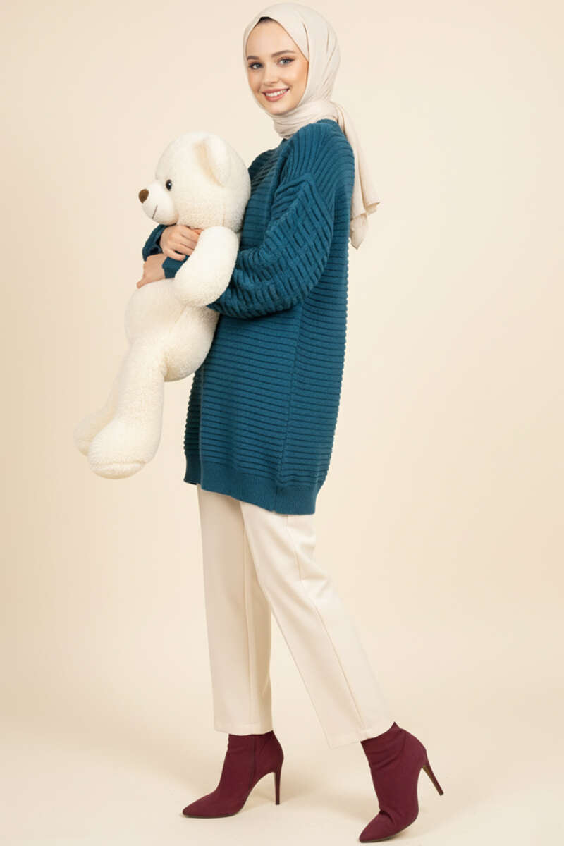 Yan Yırtmaçlı Yumoş Uzun Triko Tunik Yağ Yeşili