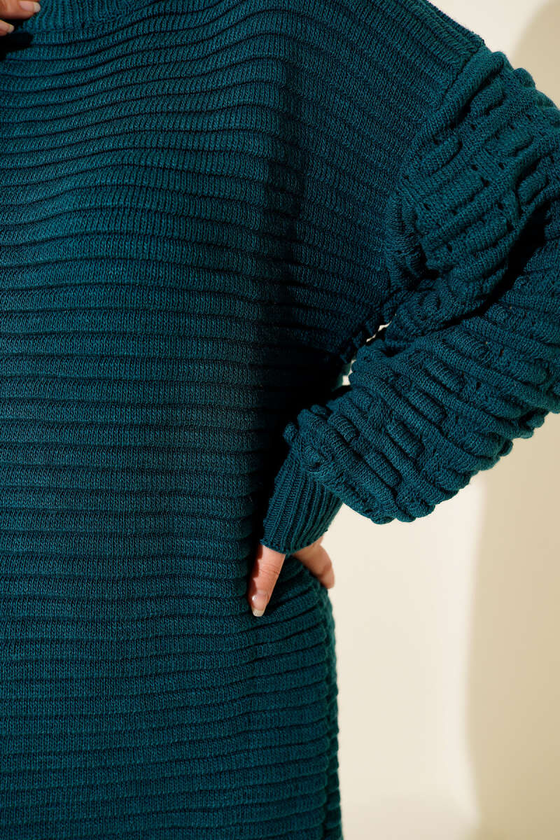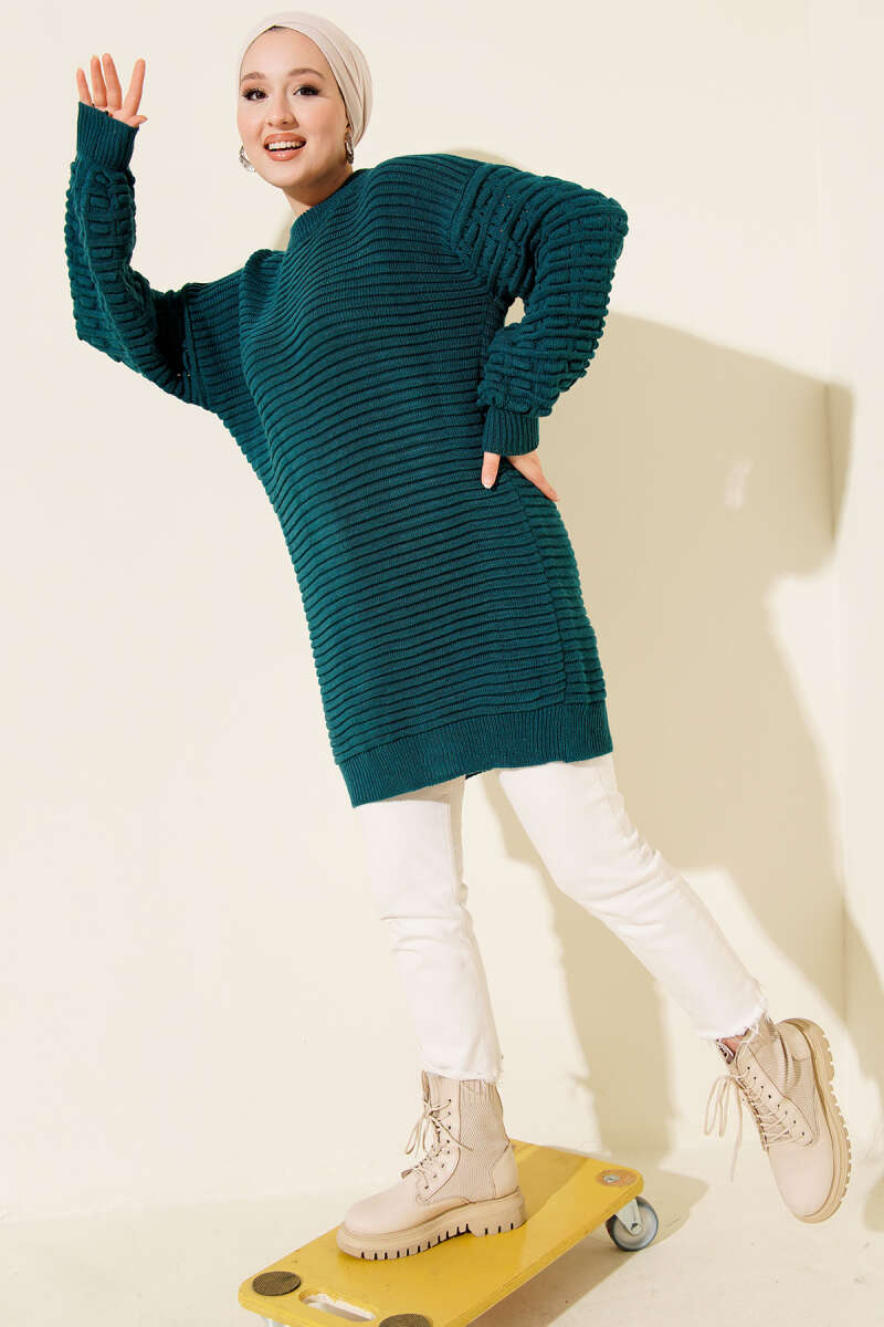 Selanik Örgü Yumoş Triko Tunik Yağ Yeşili