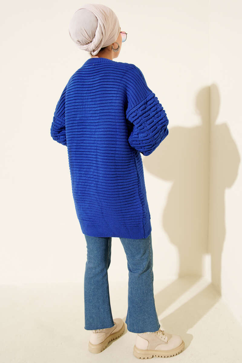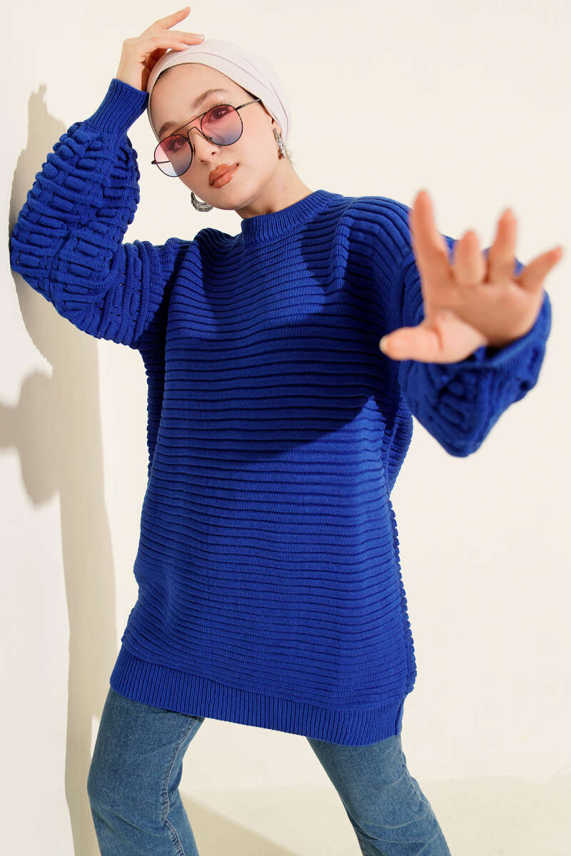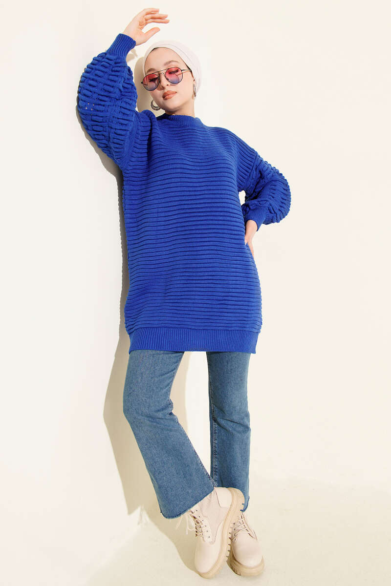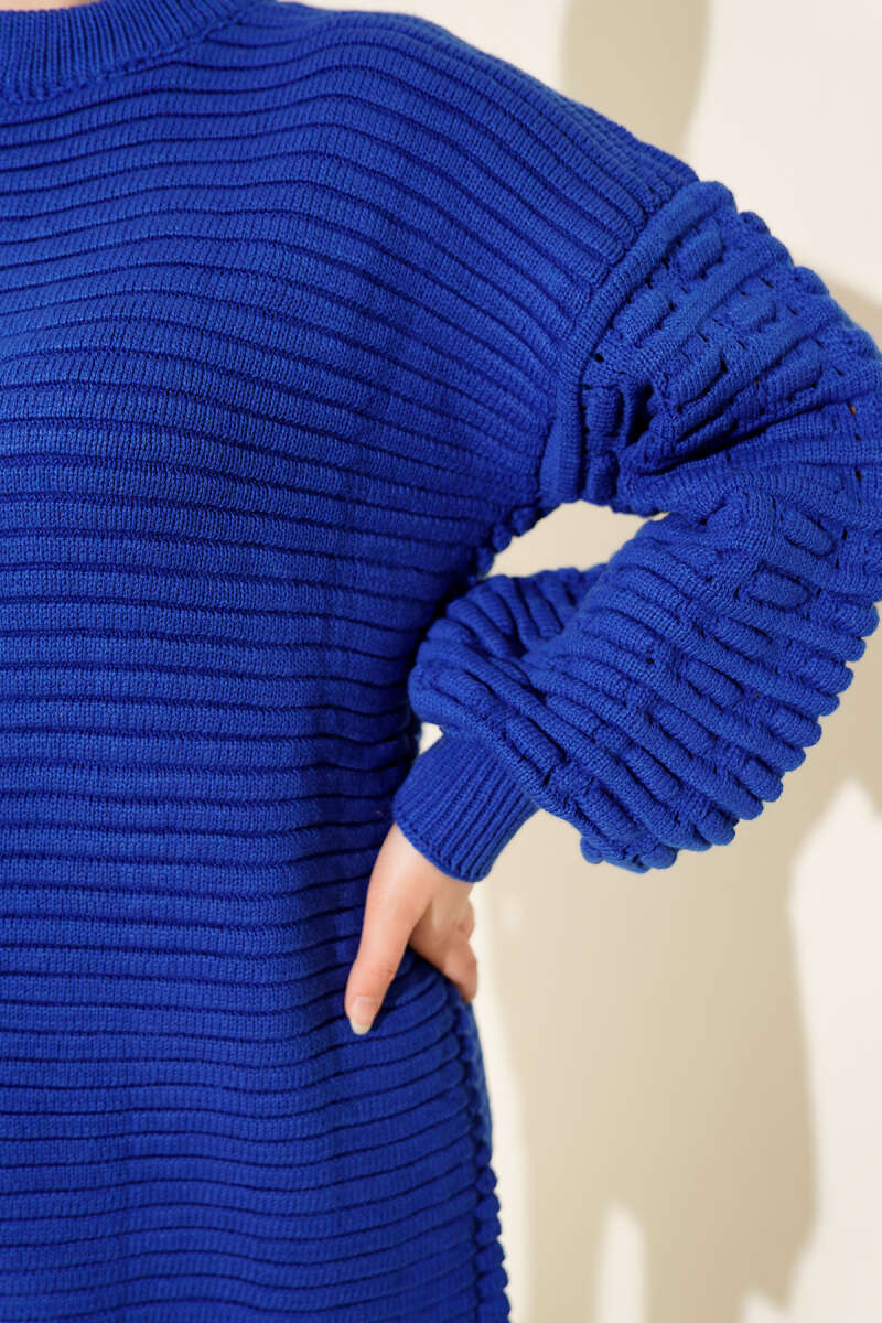 Balon Kol Kabartmalı Triko Tunik Kestane