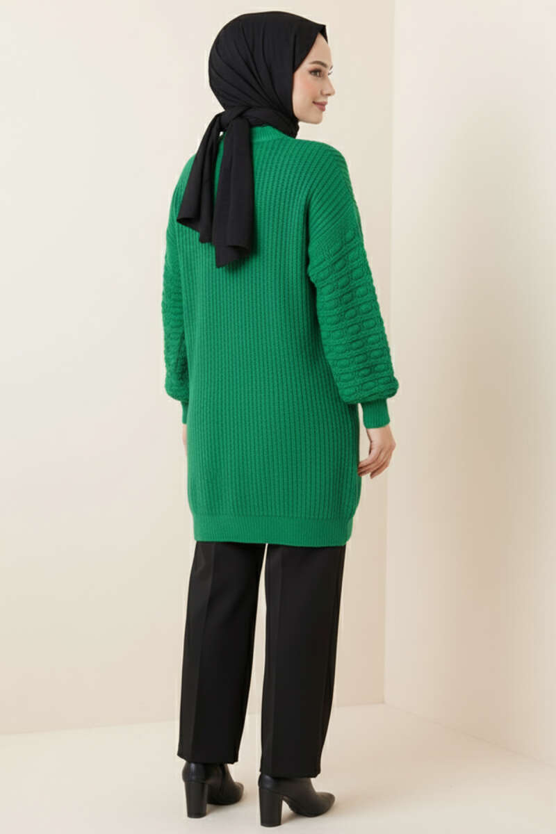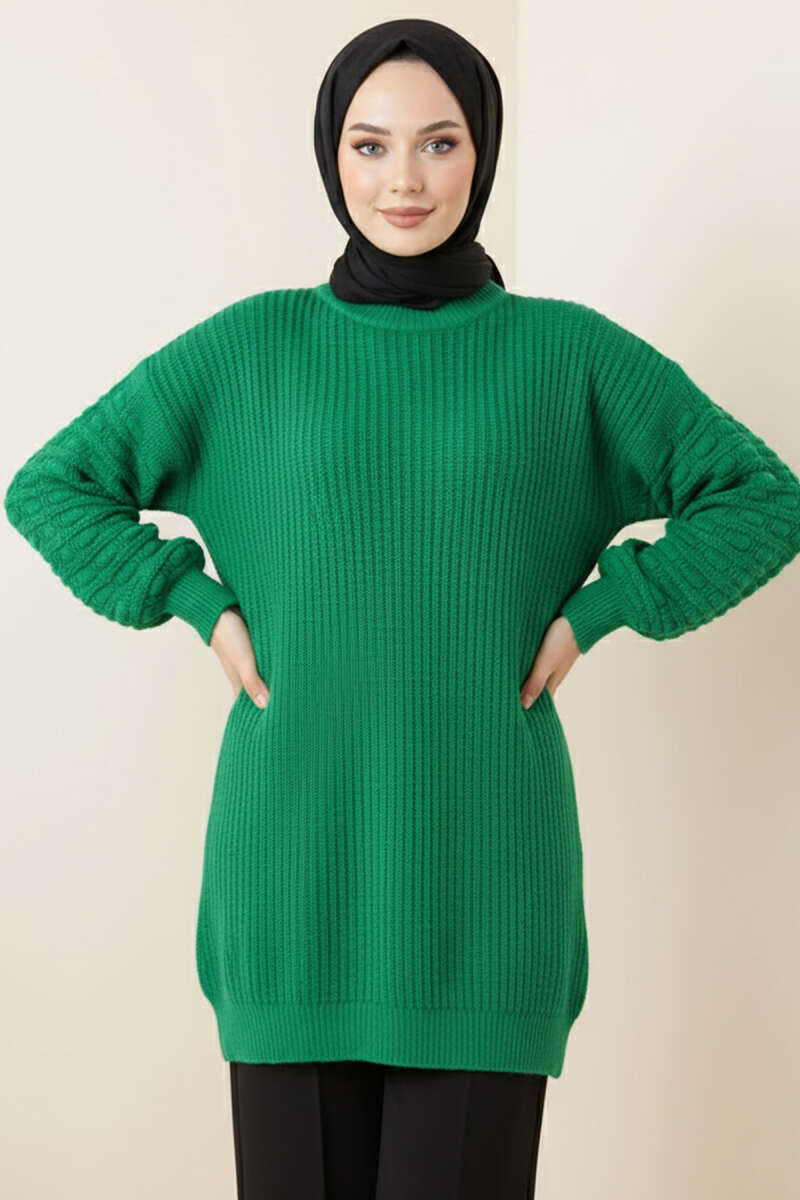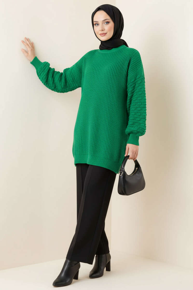 Balon Kol Kabartmalı Triko Tunik Yeşil