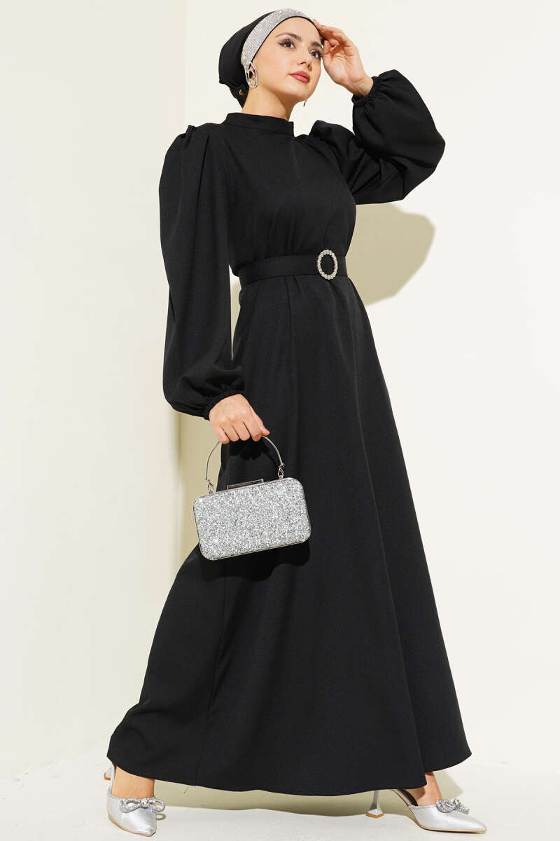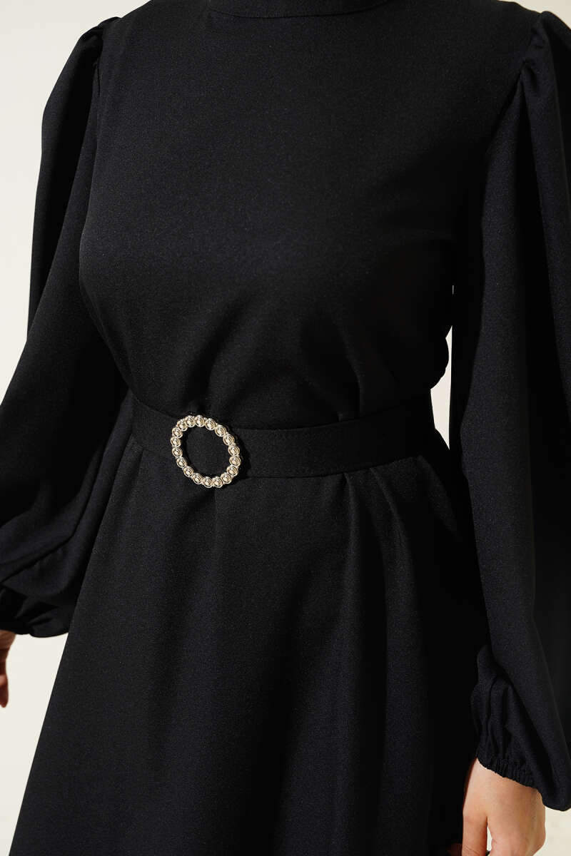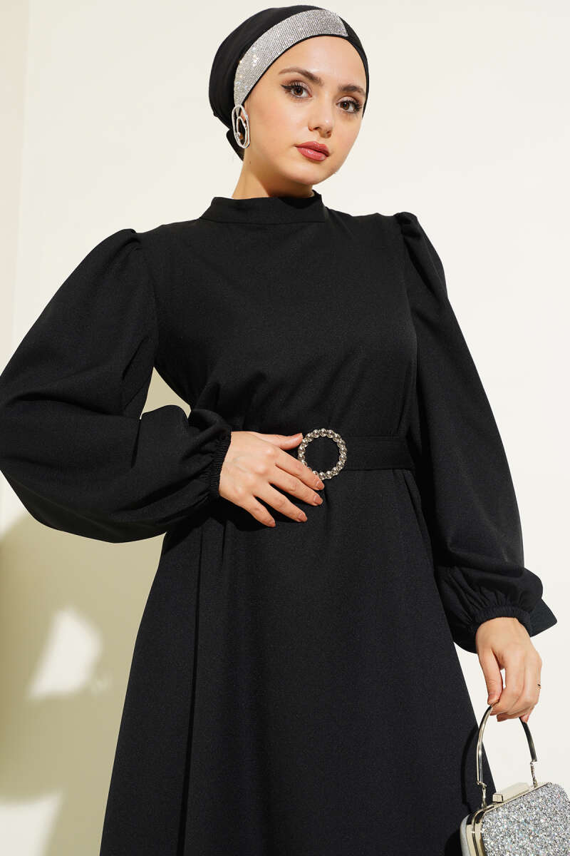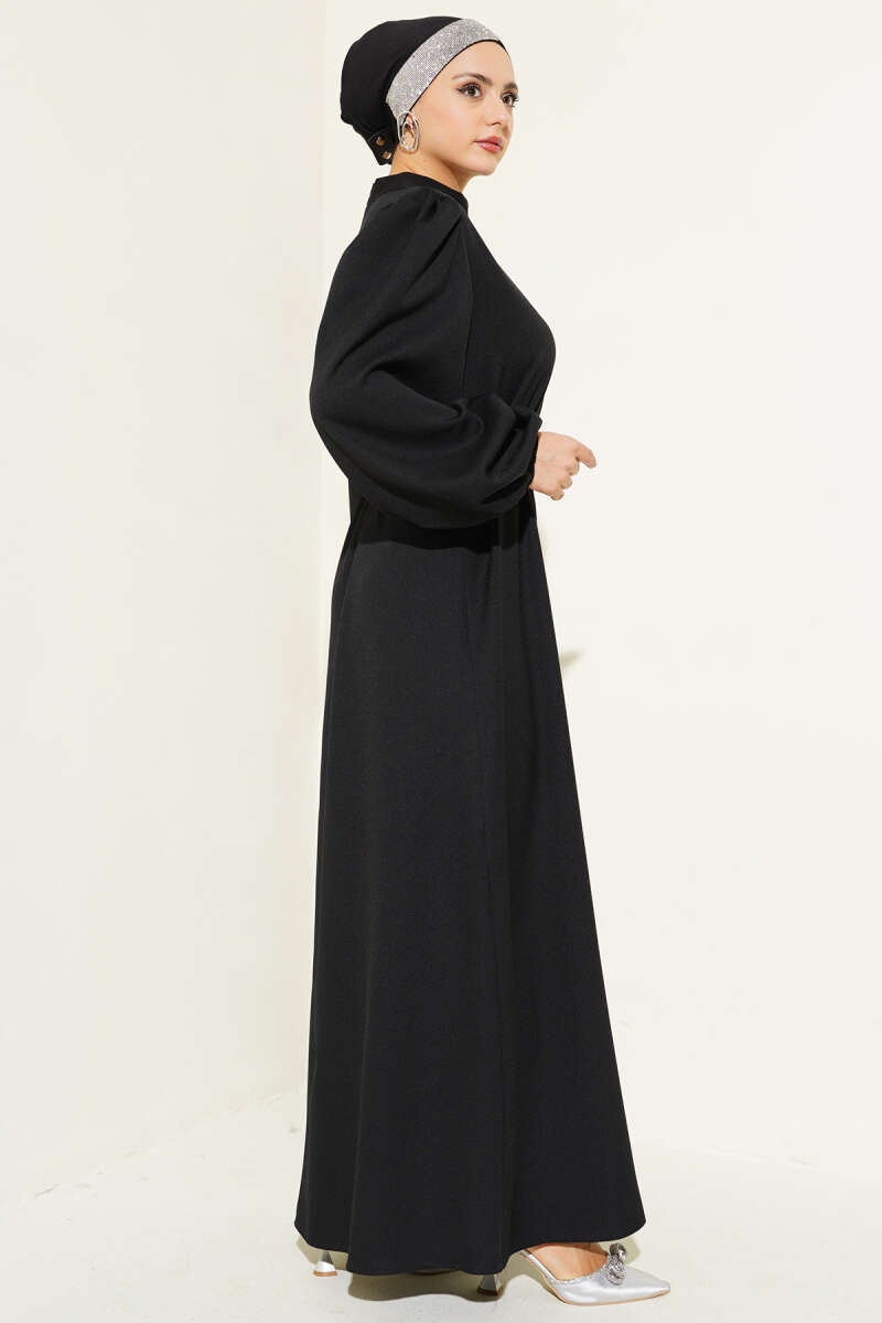 Pileli Yanı Düğmeli Elbise Siyah