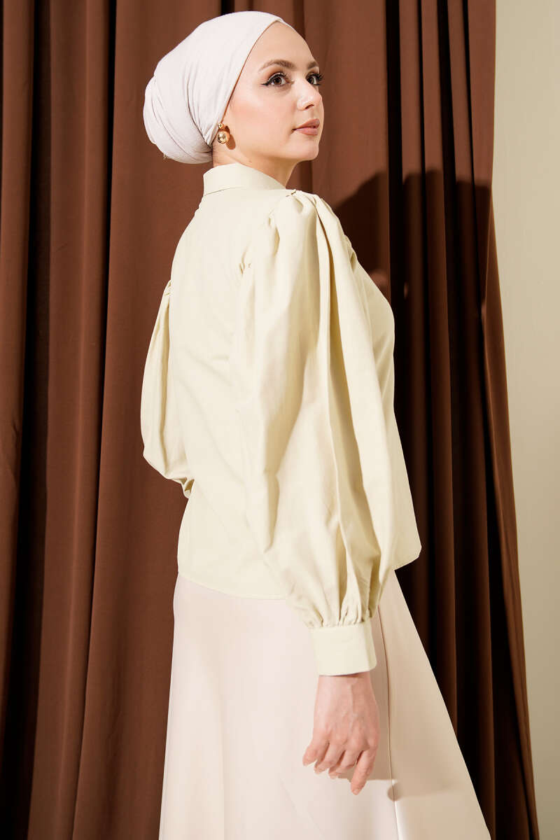 Omuz Pileli Kemerli Gömlek Acı Kahve