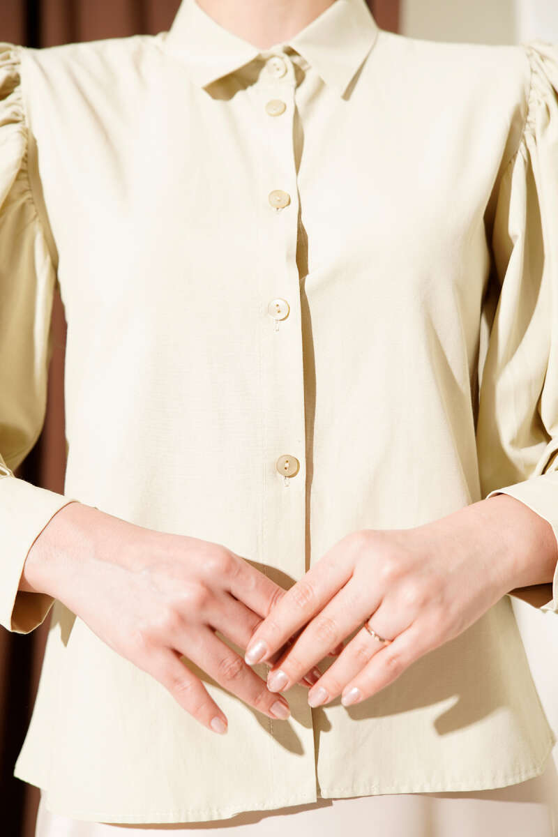 Nakışlı Düğmeli Keten Gömlek Ekru