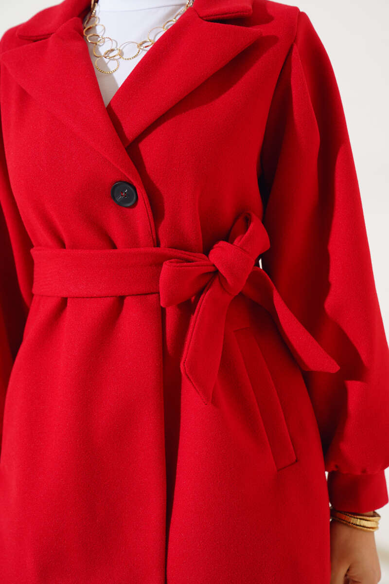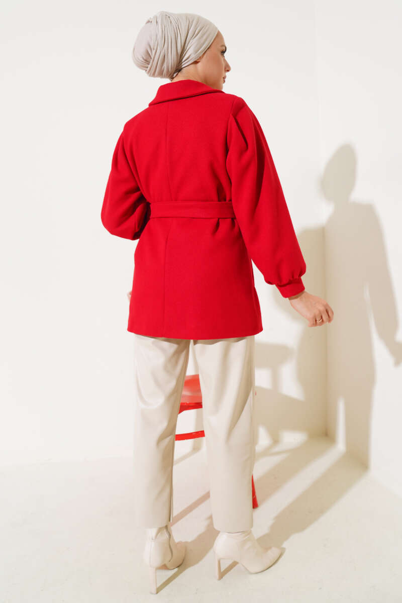 Balon Kol Kısa Kaşe Kaban Kırmızı