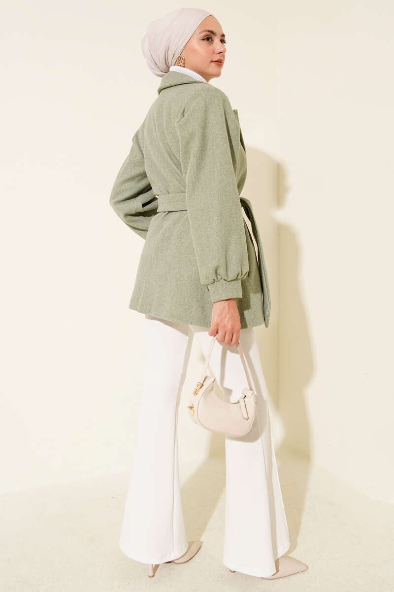 Omuz Apoletli Atkılı Kaşe Kaban Zümrüt