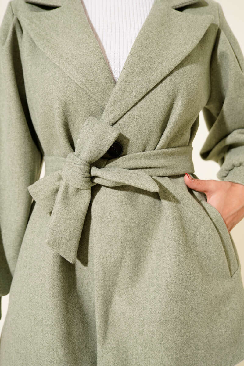 Kruvaze Yakalı Kuşaklı Uzun Kaşe Kaban Taş
