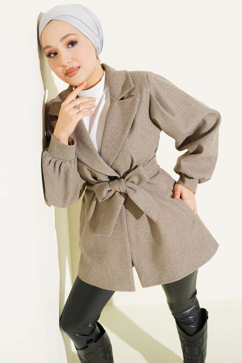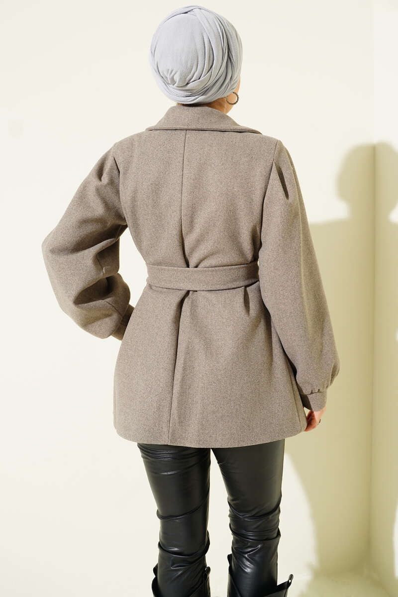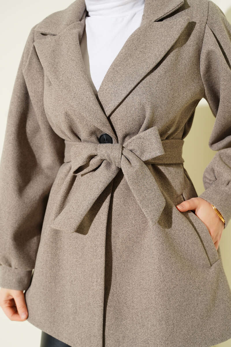Kruvaze Yakalı Kuşaklı Uzun Kaşe Kaban Taş