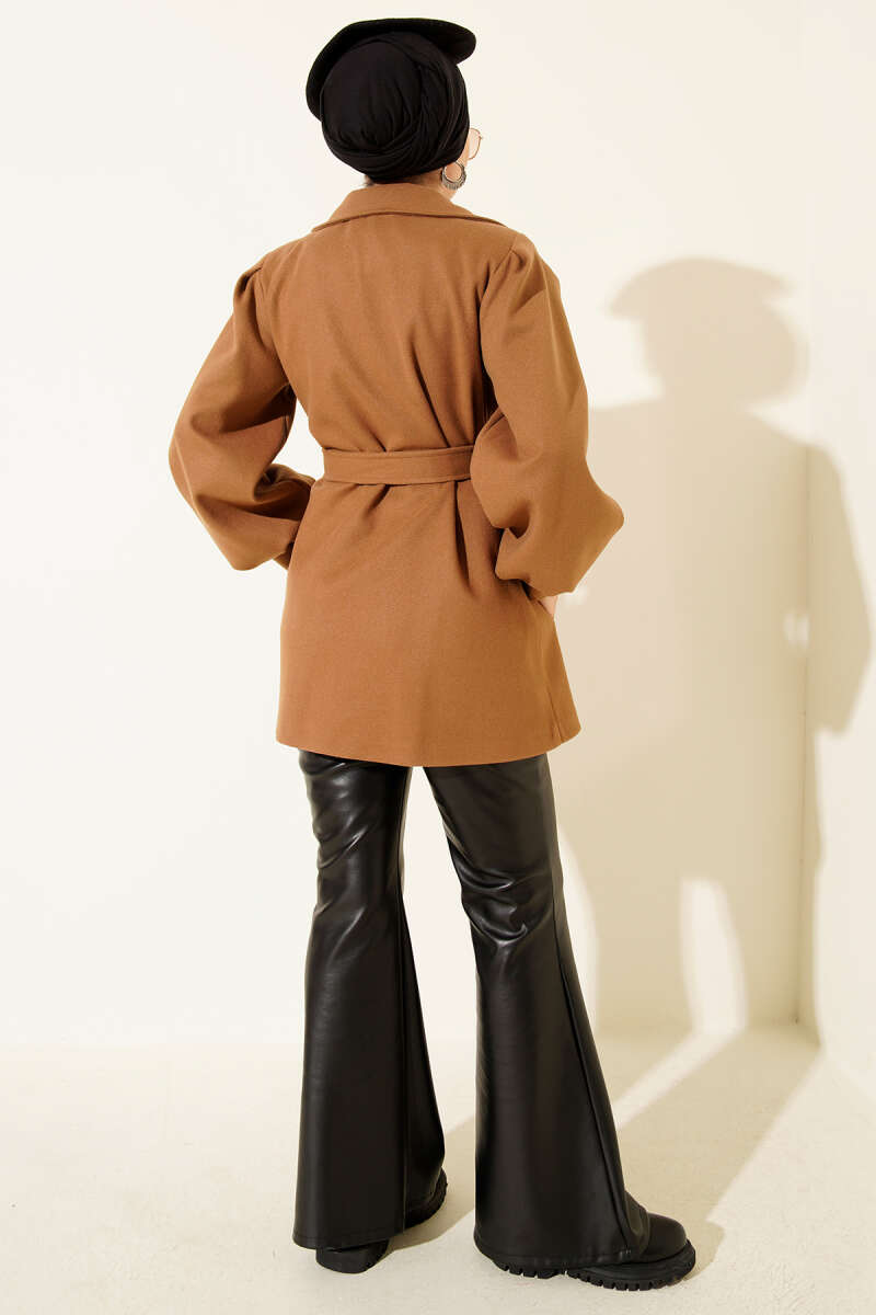 Balon Kol Kuşaklı Kısa Kaban Kahve