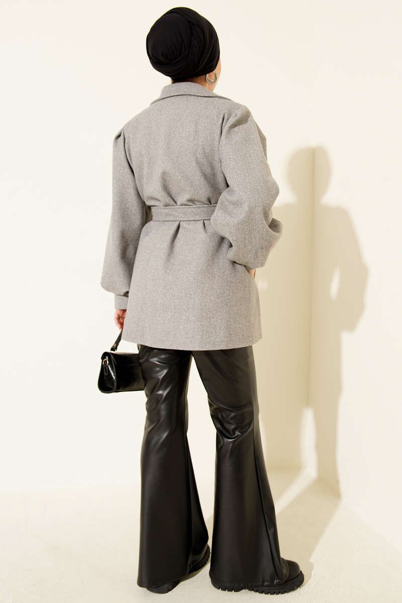 Balon Kol Kuşaklı Kısa Kaban Taş