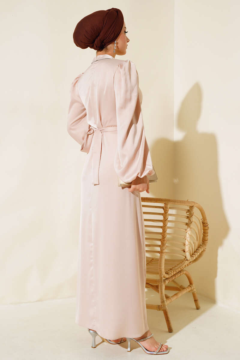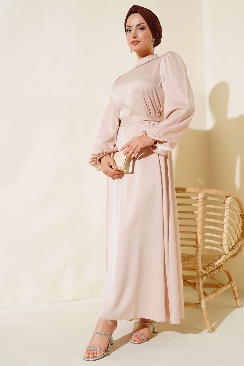 Yeni sezon elbise modelimiz sizlerle beraber. Saten elbisemiz şık tasarımıyla sizleri önce çıkaracak. Belden kuşak bağlamalı elbisemiz kloş modeldir. Balon kol modeldir. İki adet kemer köprüsü bulunmaktadır. Kol bilekleri lastiklidir. Renk seçenekleri mevcuttur.