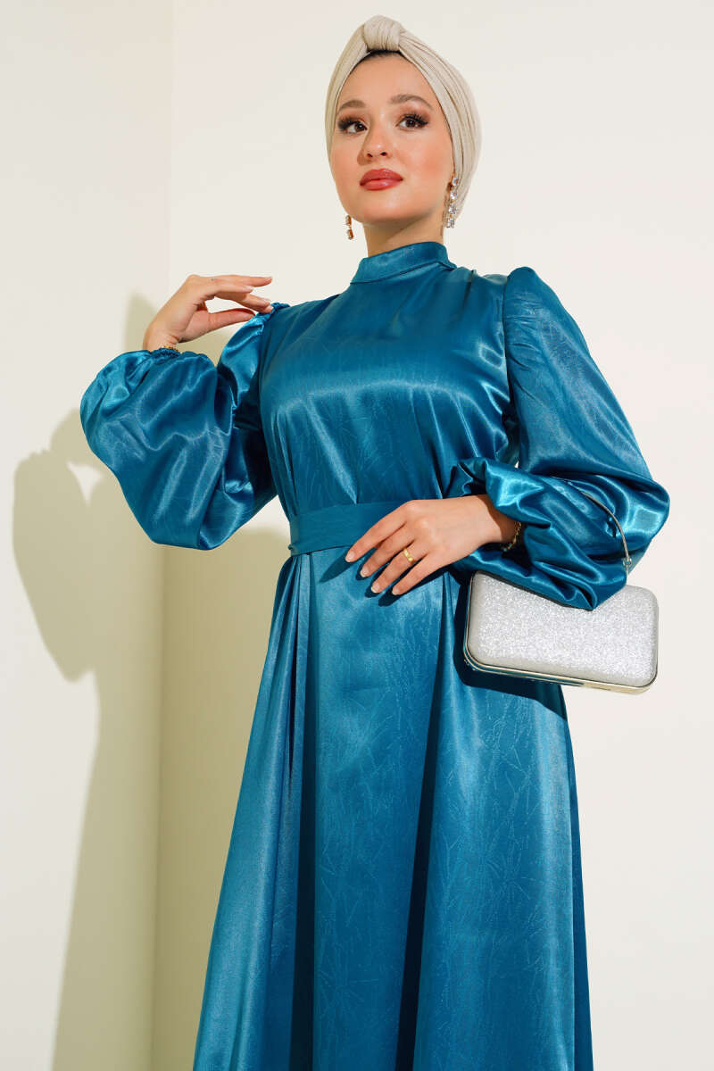 Scuba Pens Detaylı Kemerli Elbise Vizon