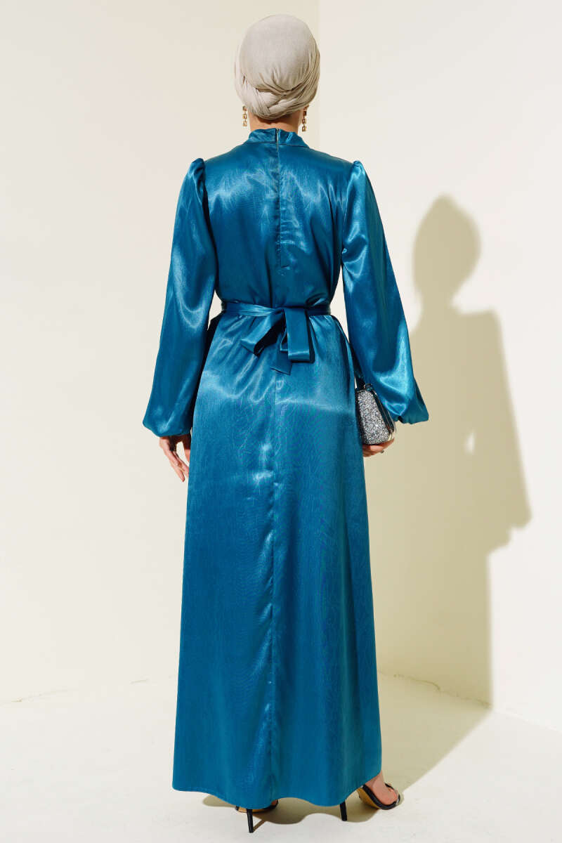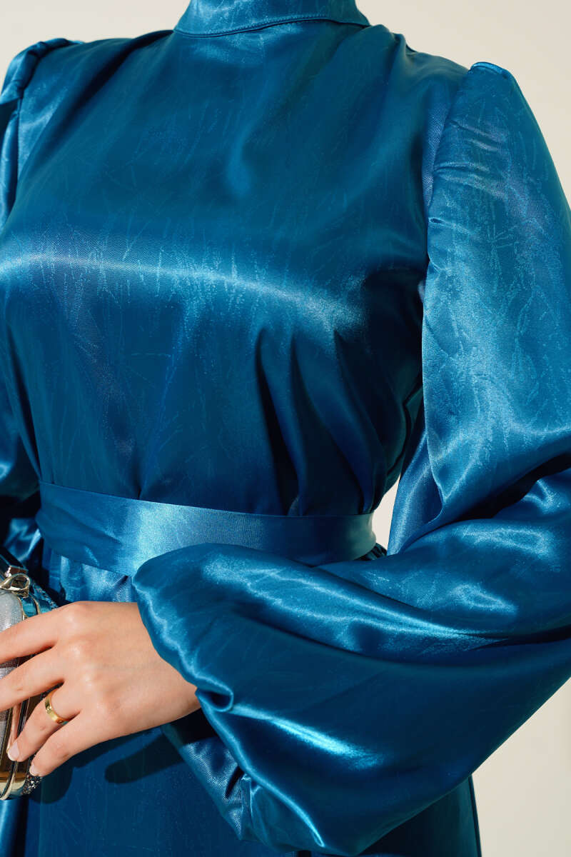Düğmeli Tensel İnce Kemerli Elbise Lacivert