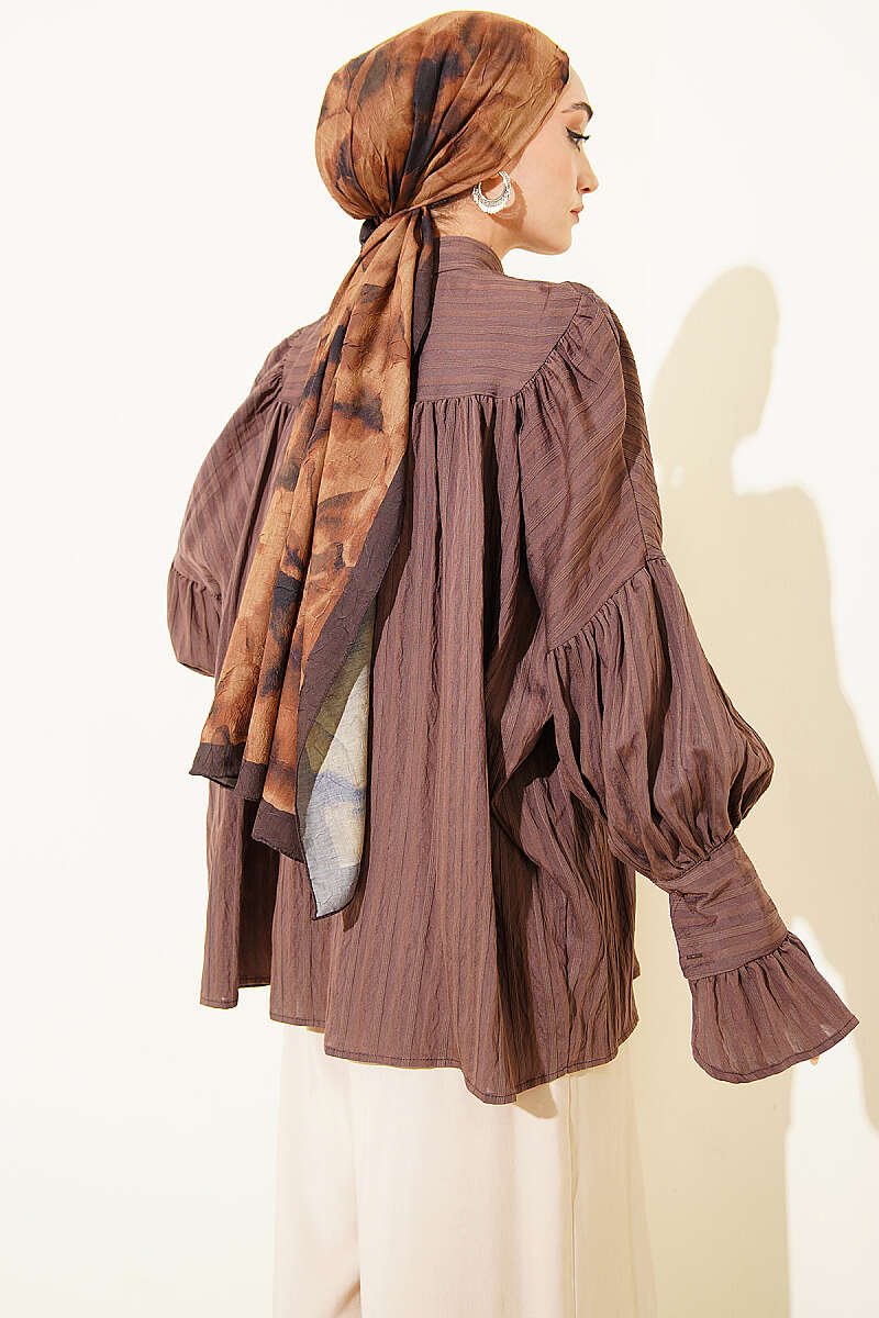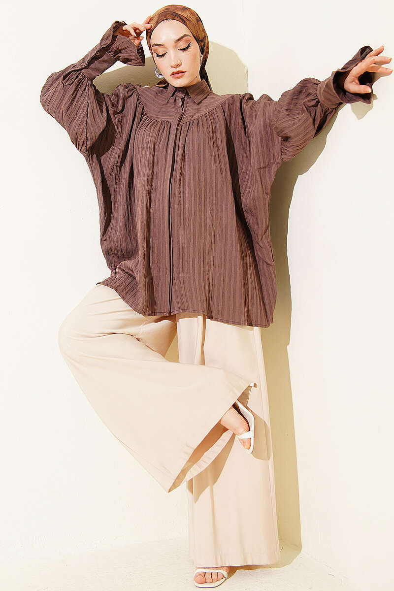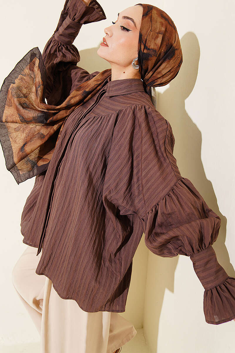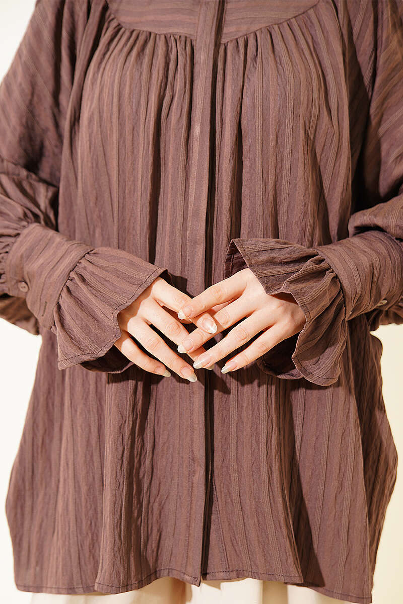 Taş Düğmeli İp Bağlamalı Gömlek Kahve