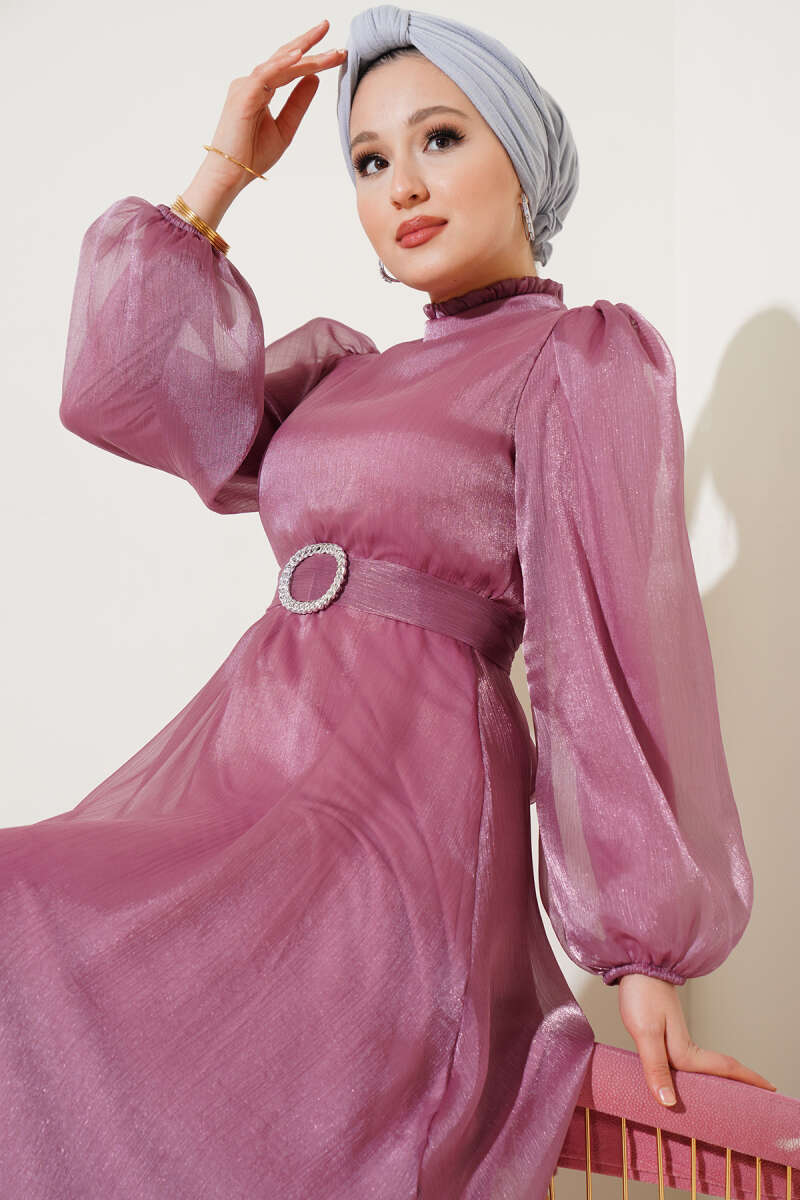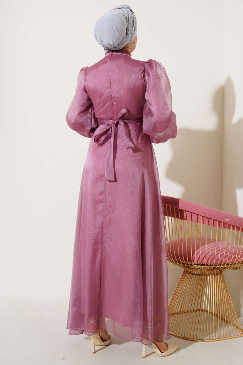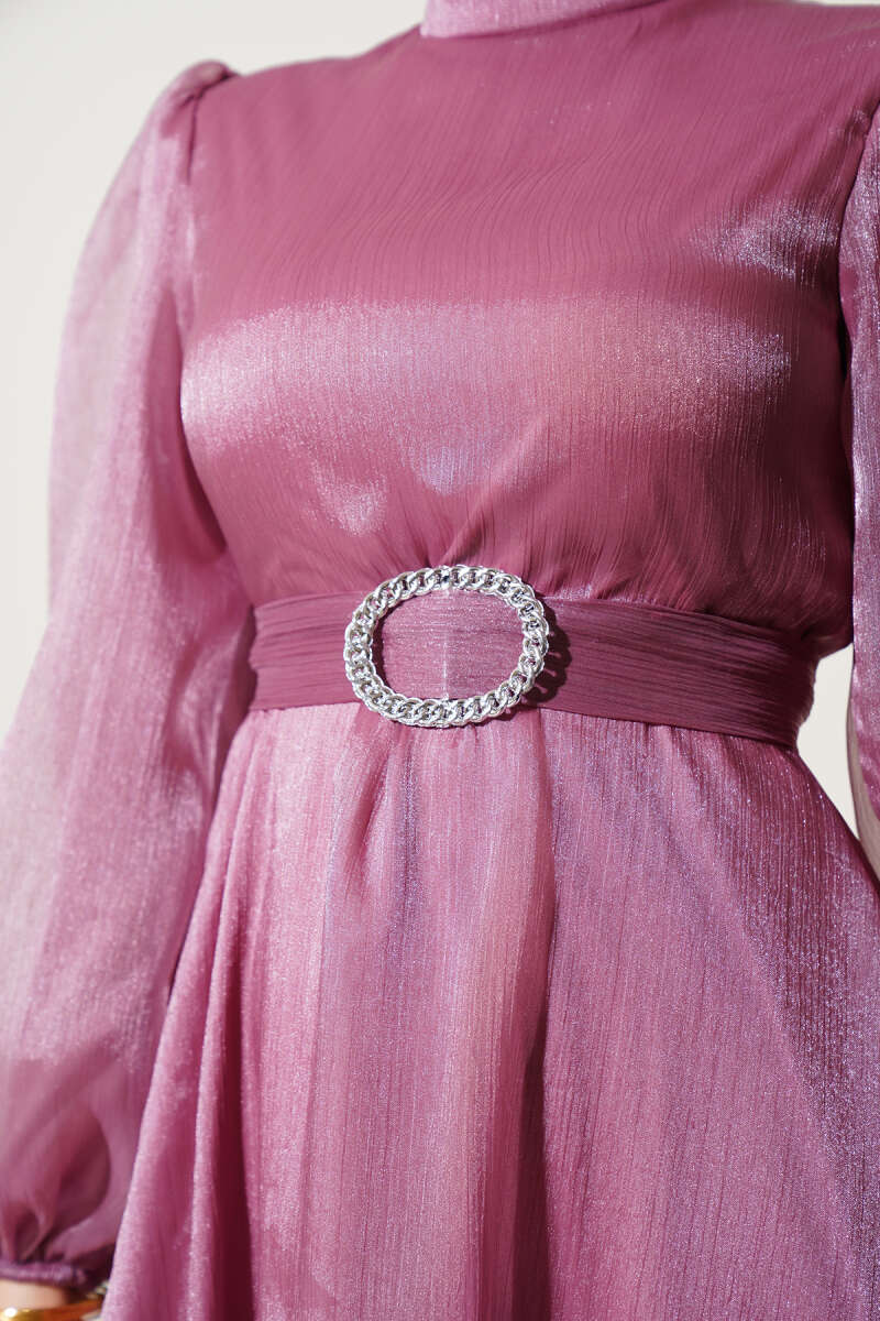 Taş Süslemeli Şifon Abiye Elbise Kahve