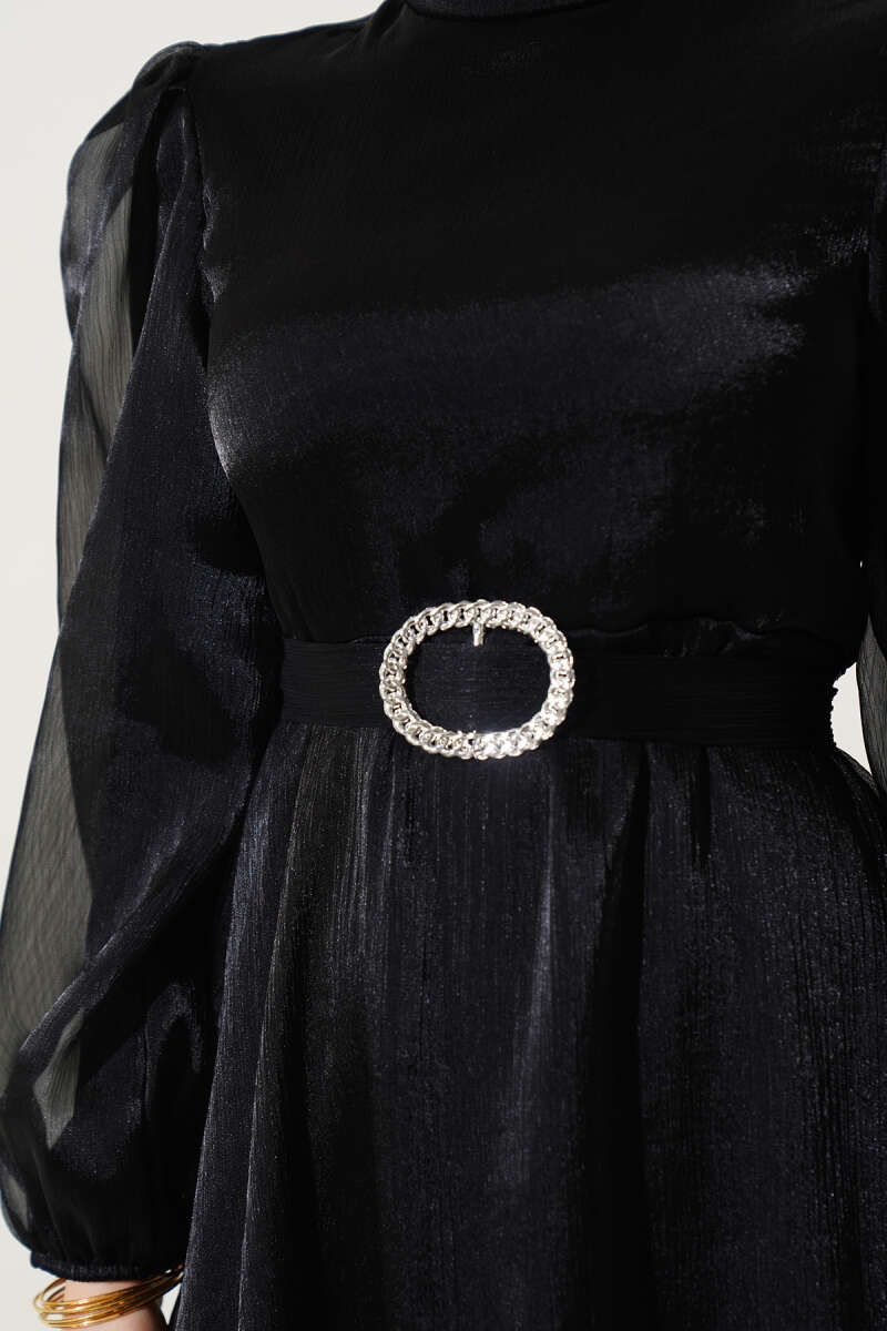 Paisley Desen Bel Lastikli Elbise Siyah