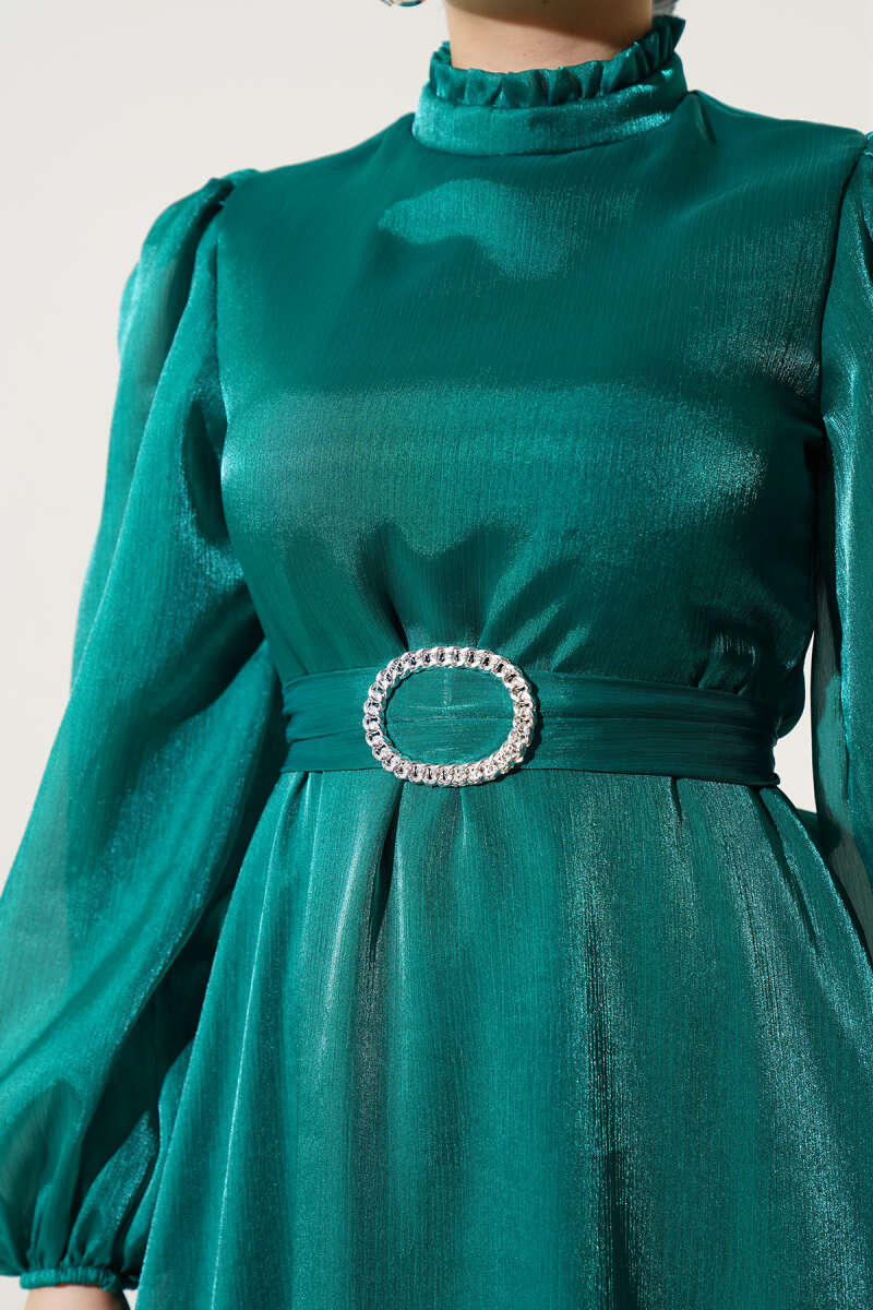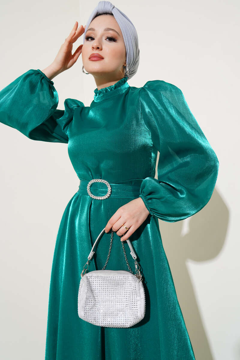 Gold Düğme Detaylı Saten Abiye Bordo