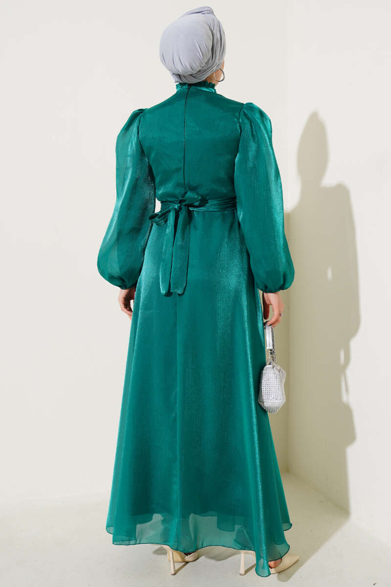Gold Düğme Detaylı Saten Abiye Kahve