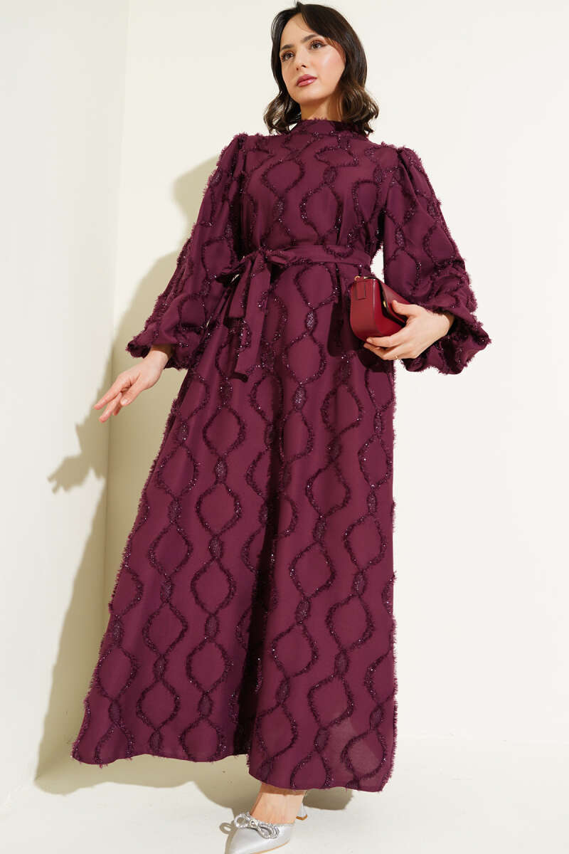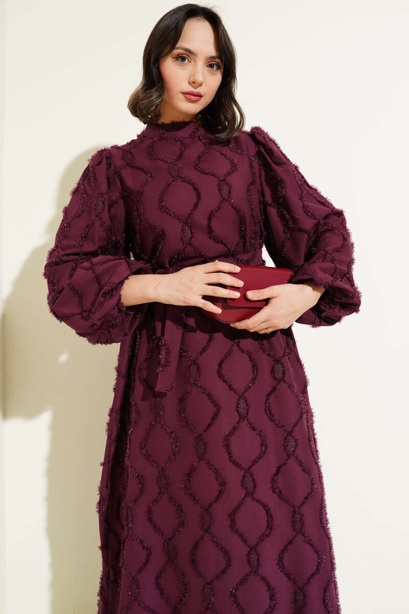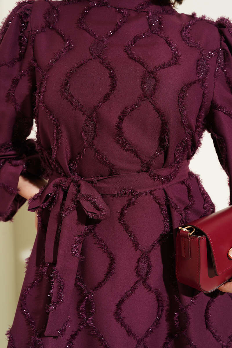 Gömlek Yaka Düğmeli Triko Elbise Bordo