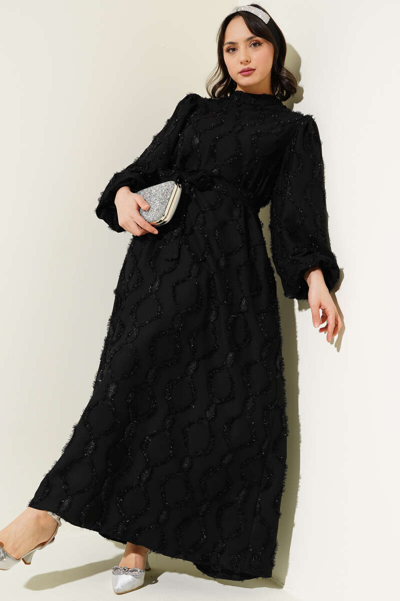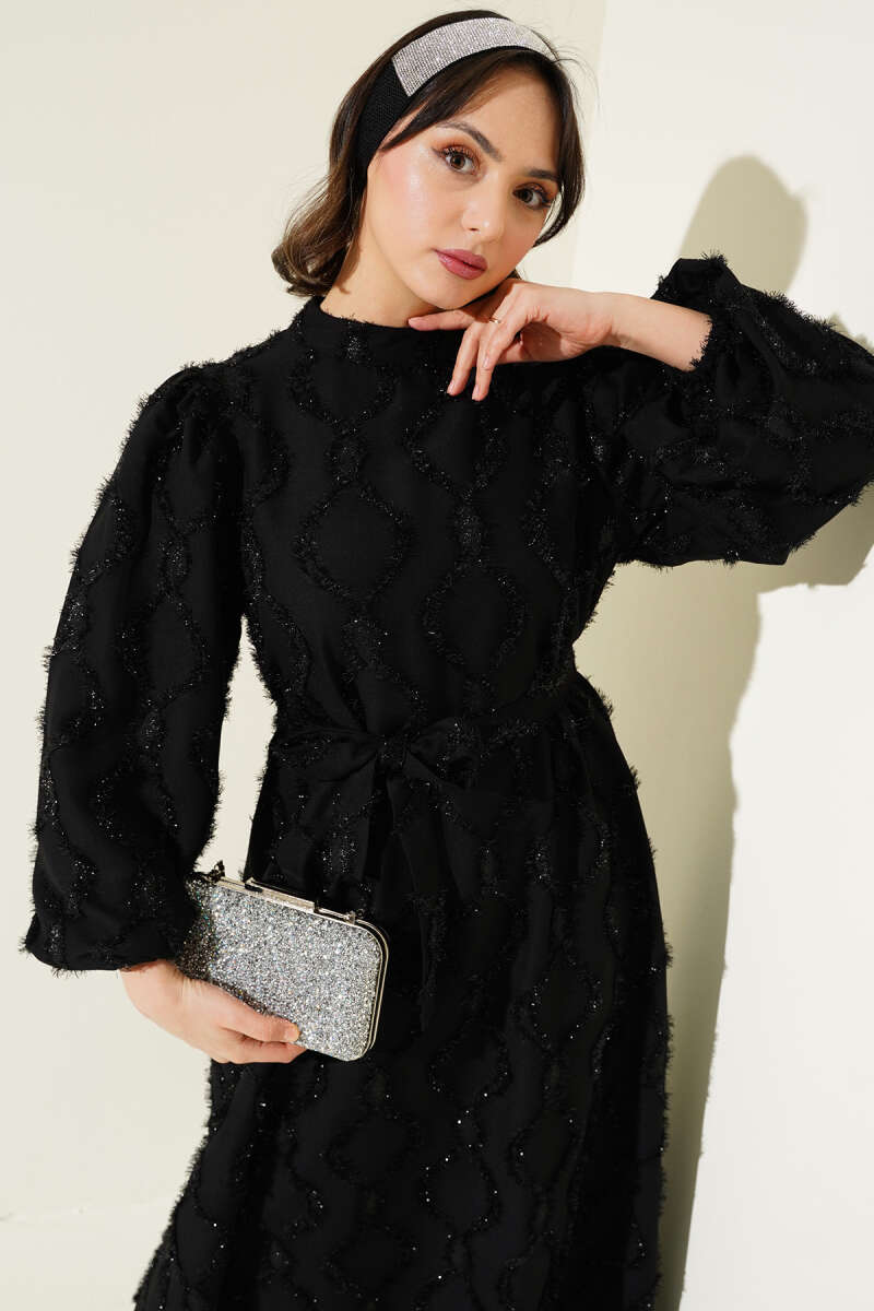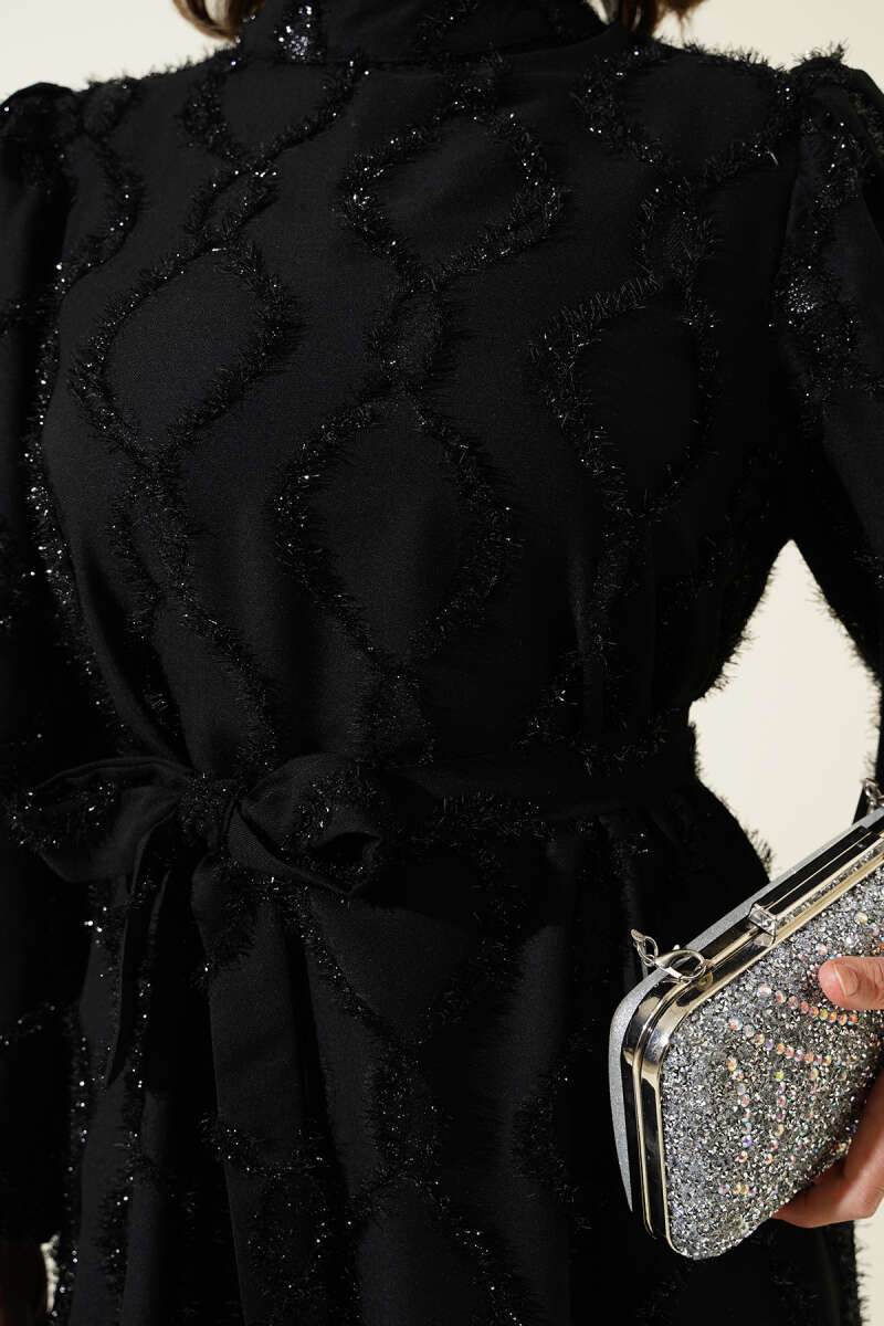 Omuz Pelerinli Taş Detaylı Abiye Elbise Siyah