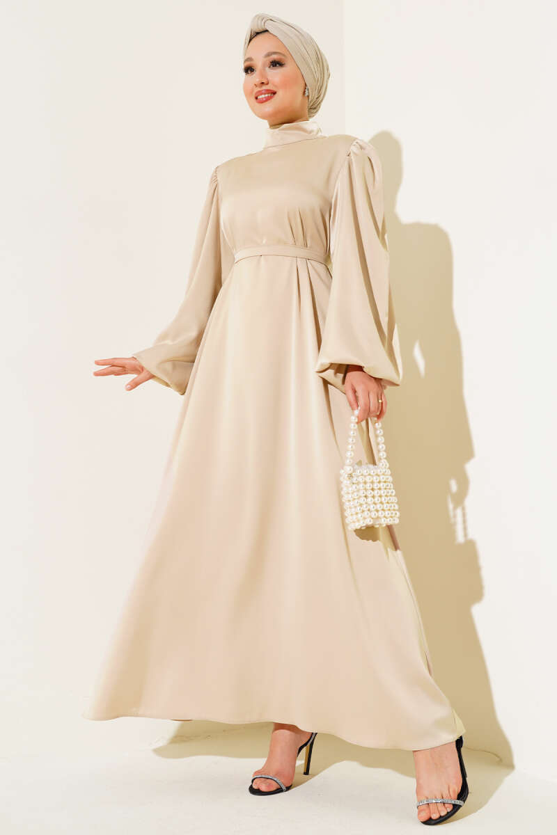 Bilek Bağlamalı Kuşaklı Abiye Elbise Lacivert