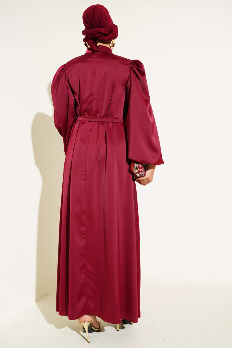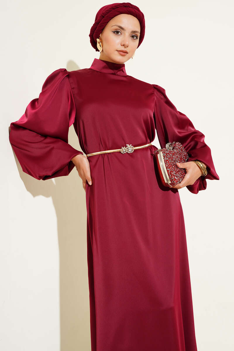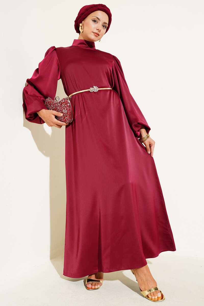 Kolları Fiyonk Detaylı Selanik Elbise Mürdüm