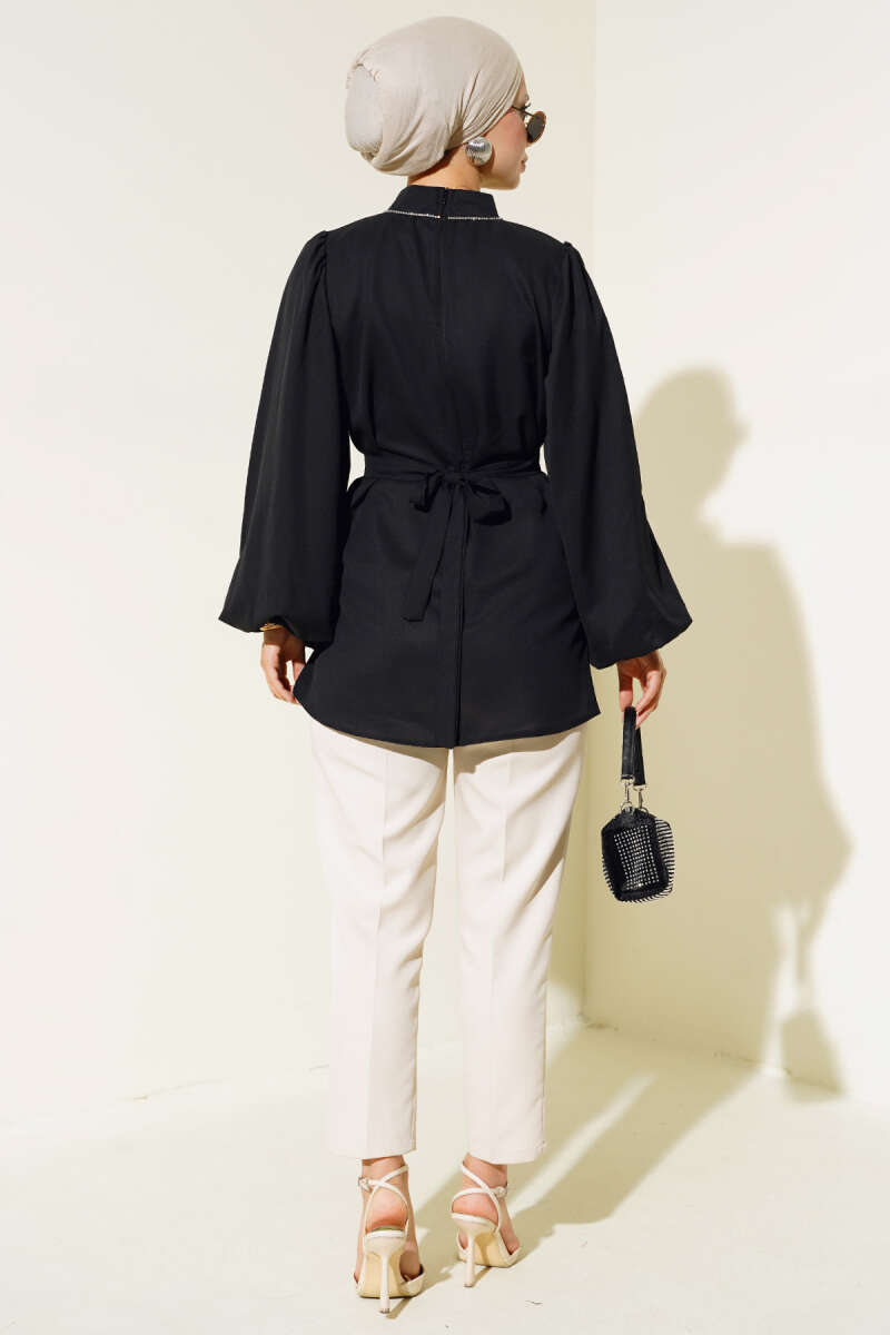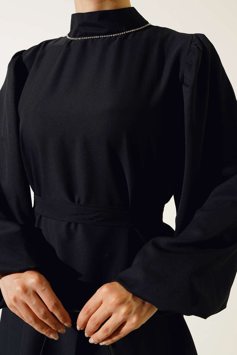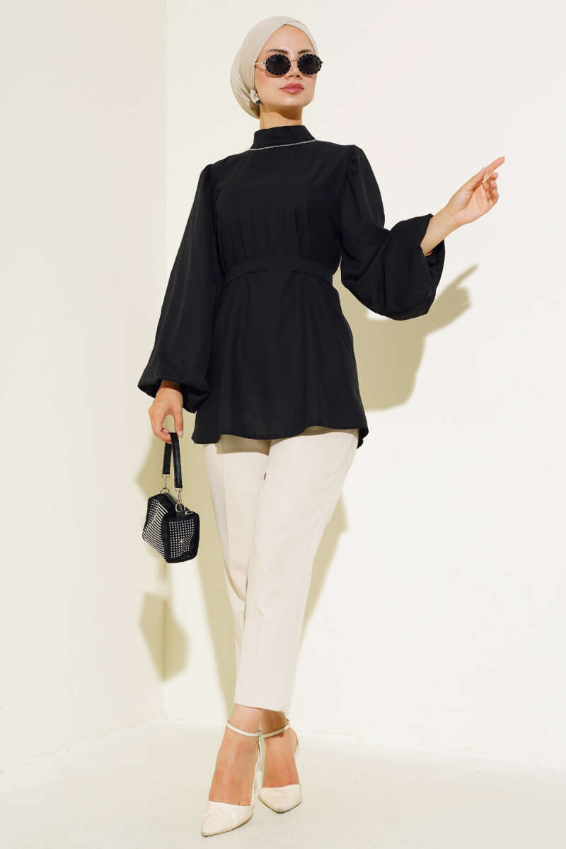 Balon Kol Saten Tunik Siyah