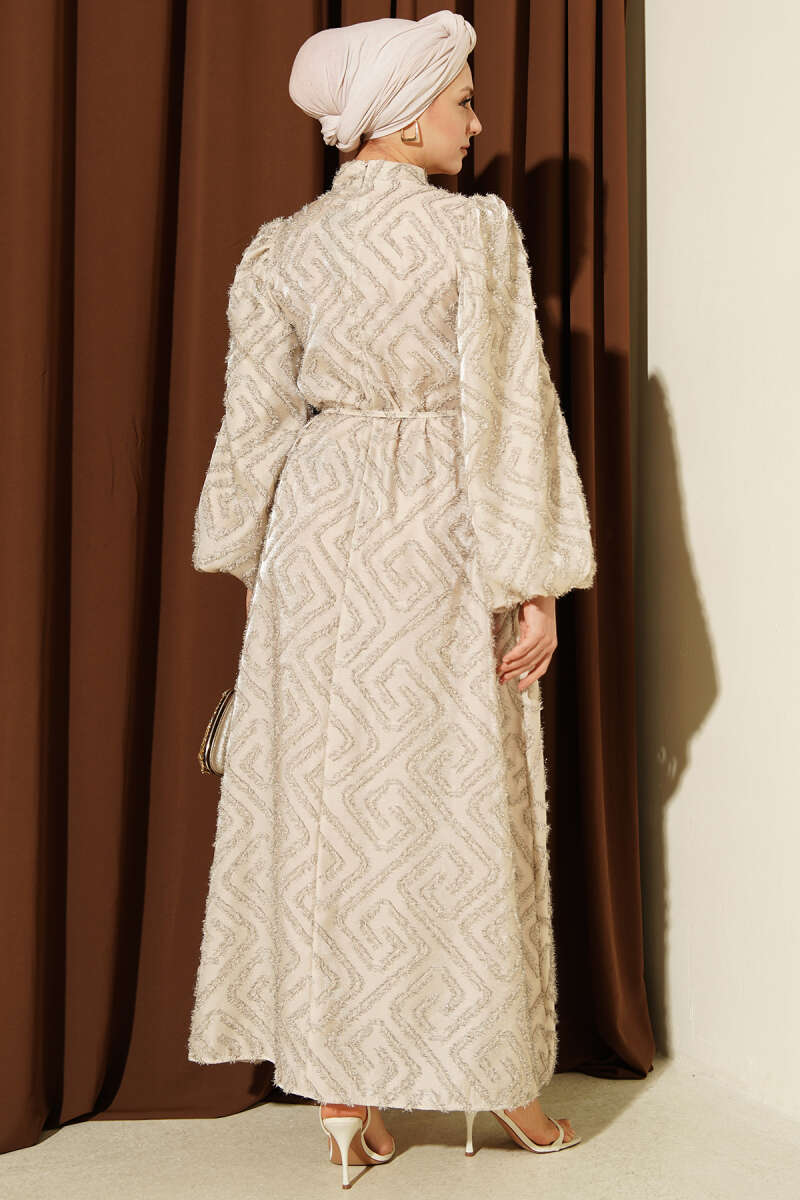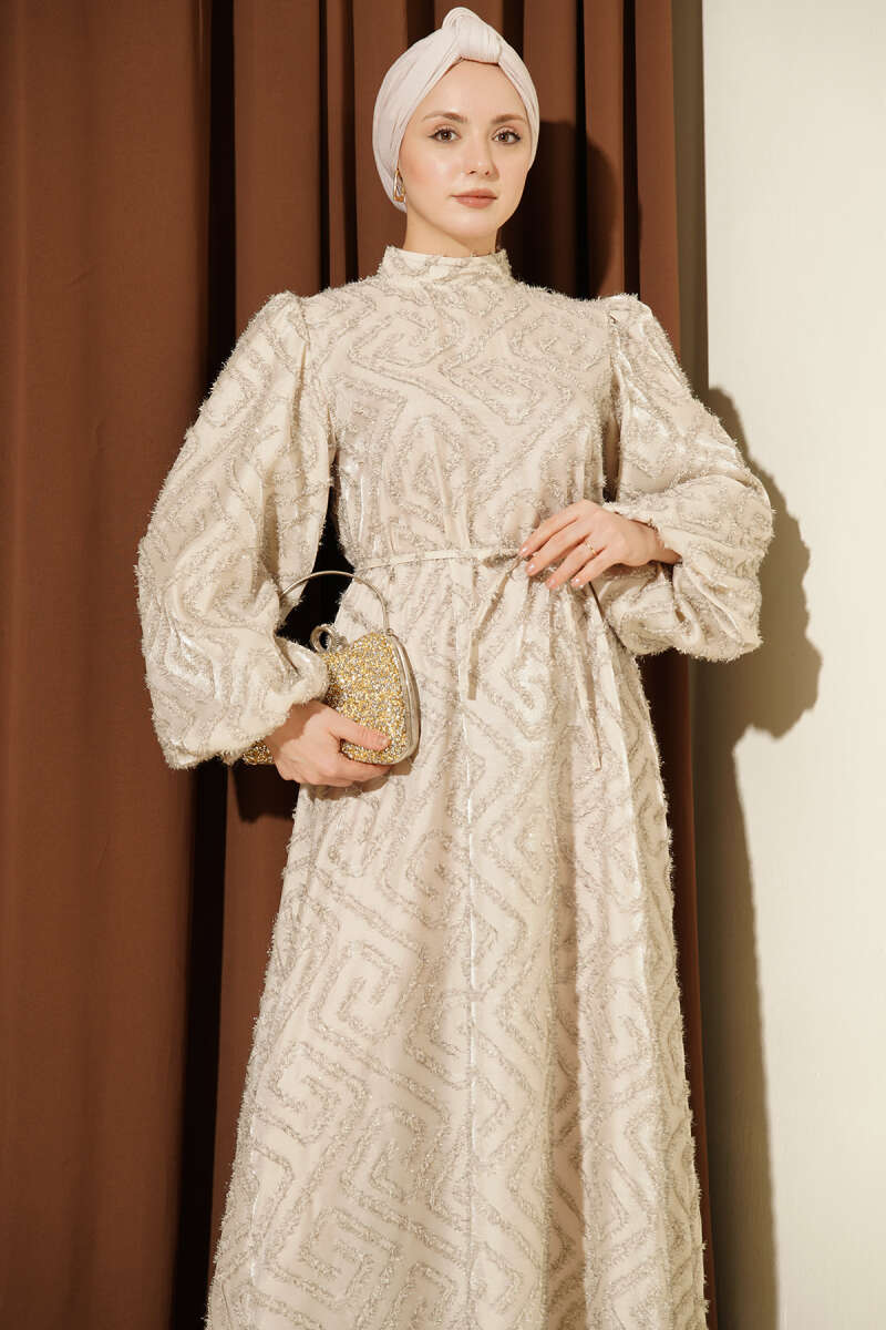 Balon Kol Sim Sakallı Abiye Elbise Taş