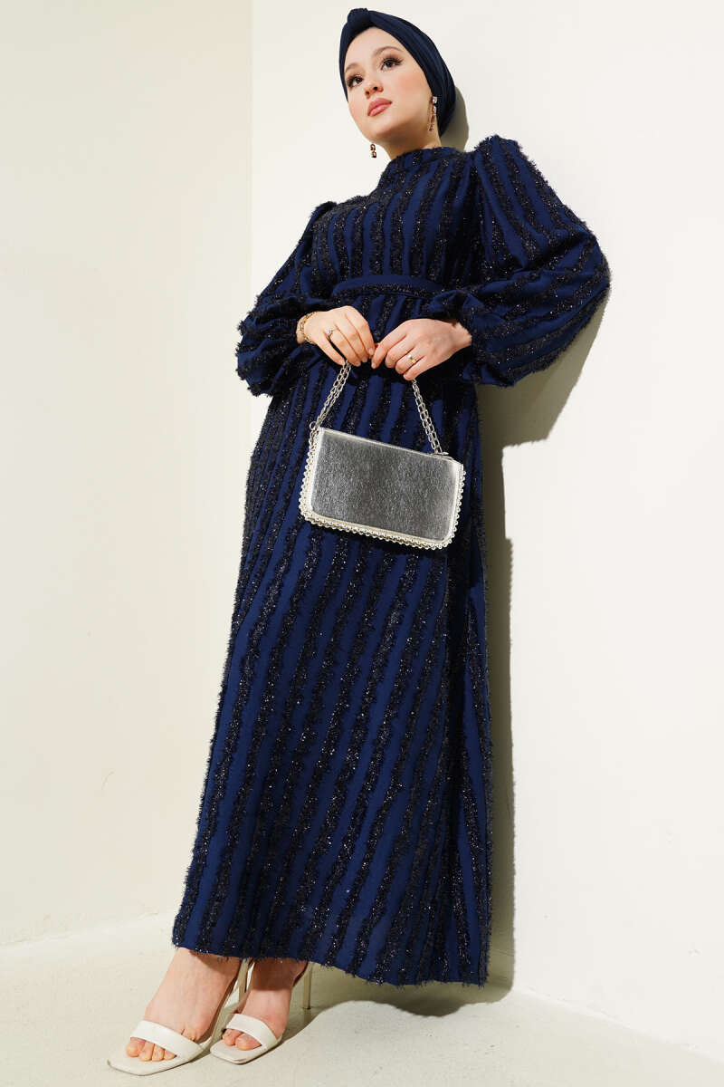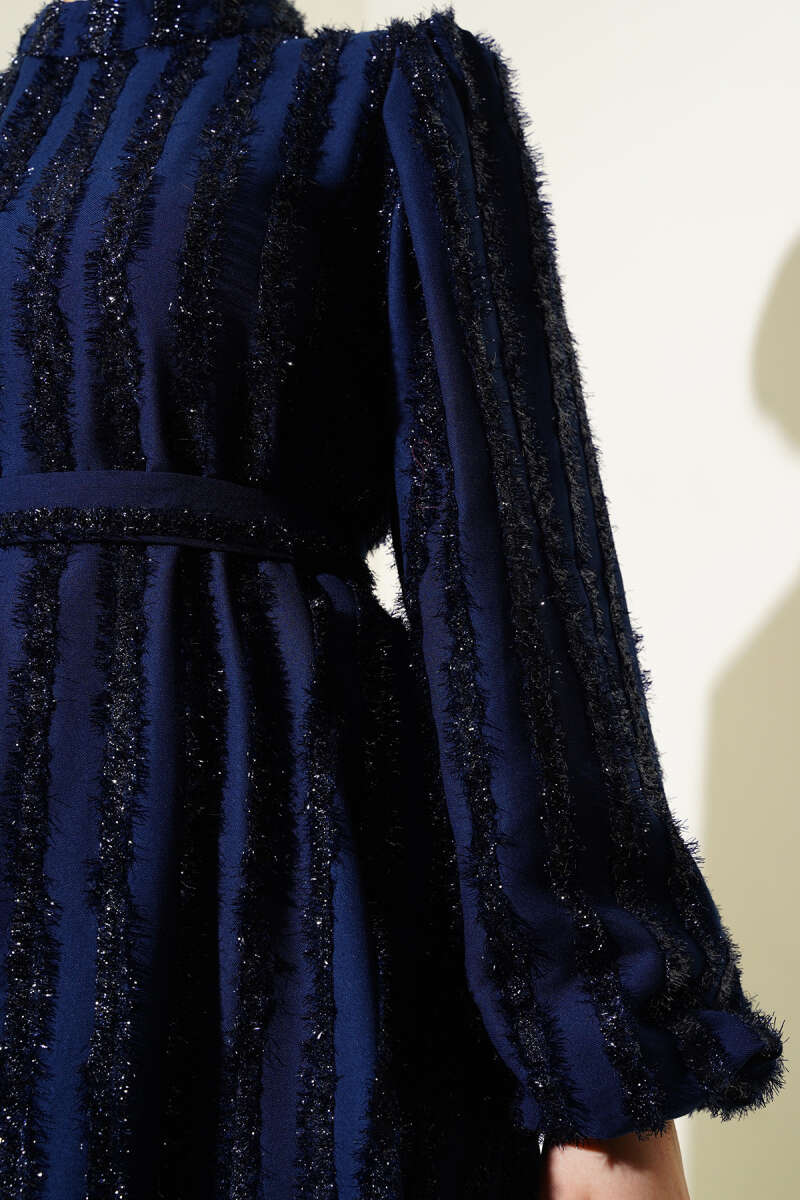 Kol Ucu Armalı İp Bağcıklı Elbise Lacivert