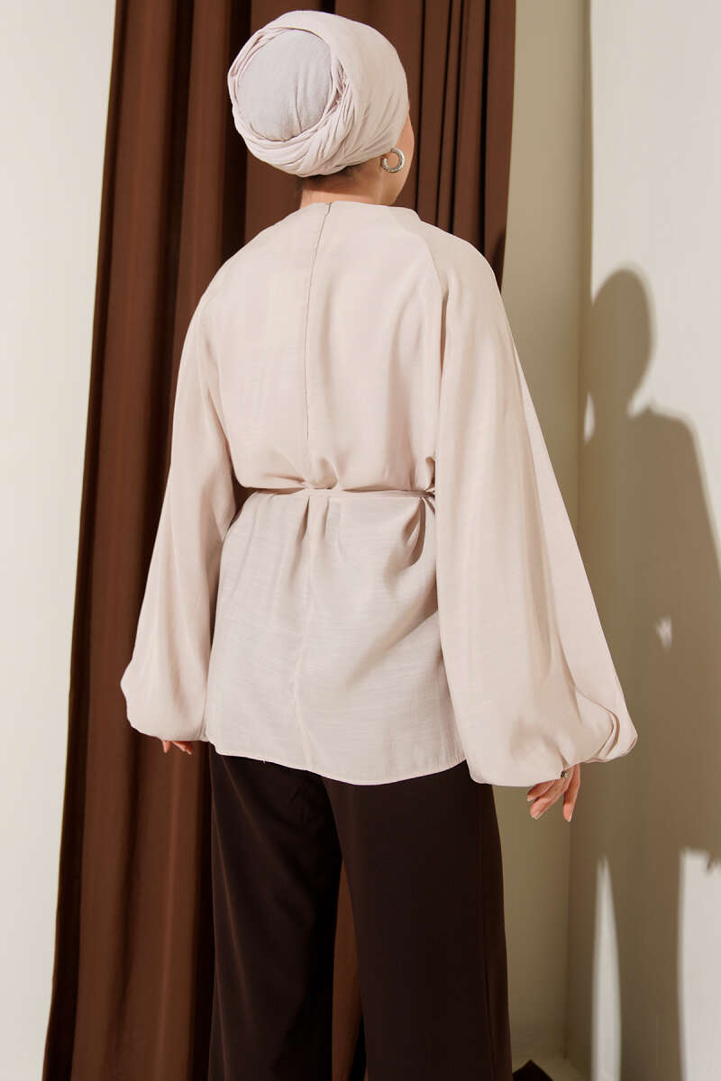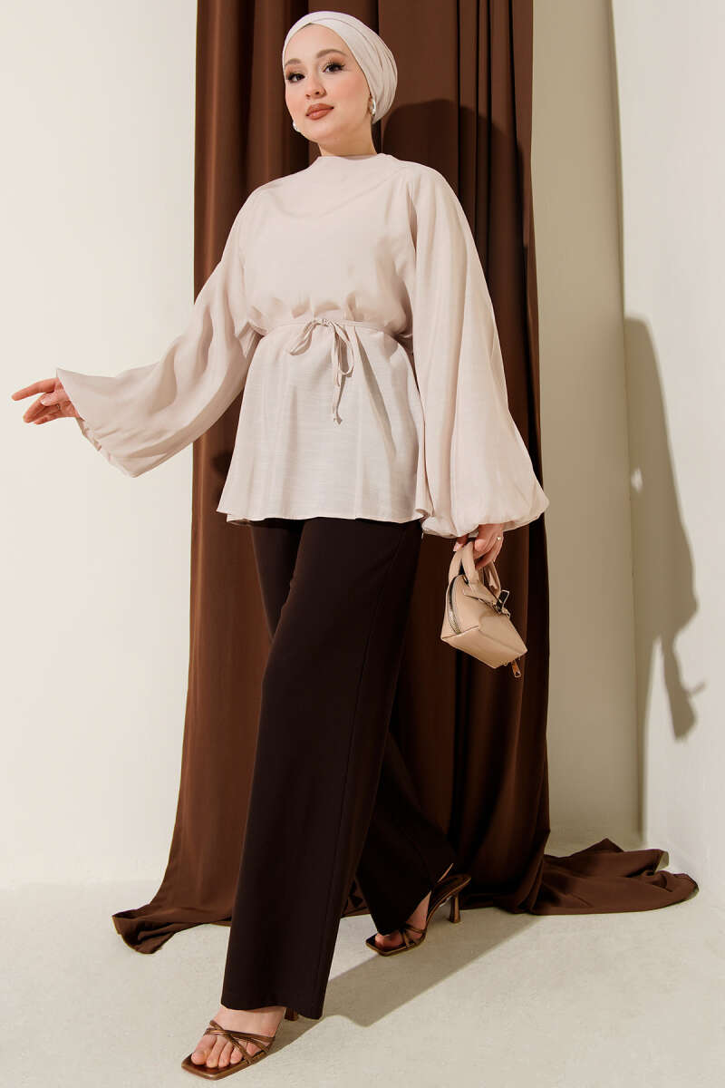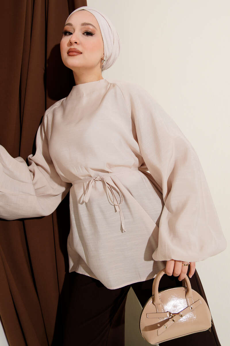 Dik Yaka Basic Yumoş Triko Tunik Latte