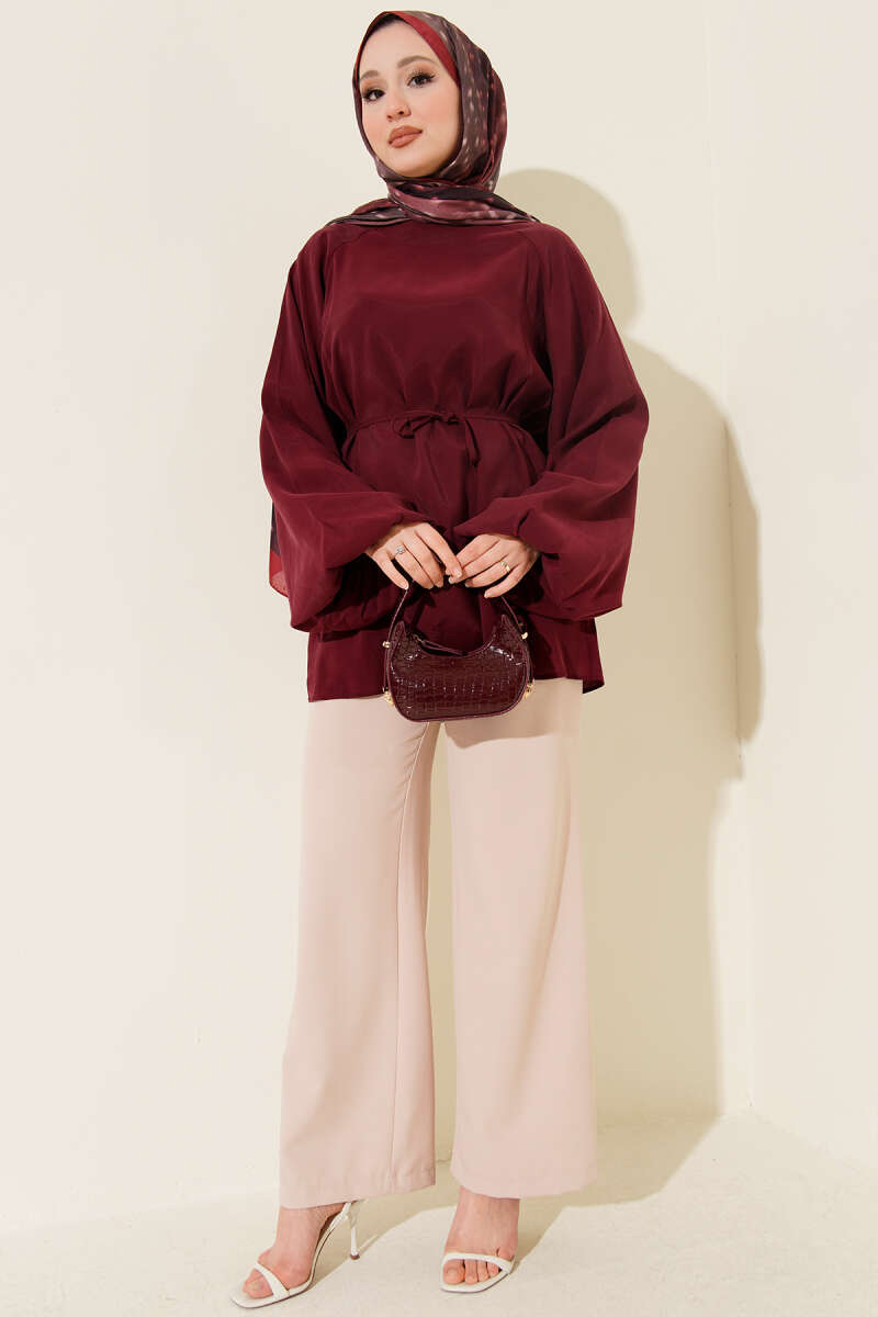 Dik Yaka Basic Yumoş Triko Tunik Bordo