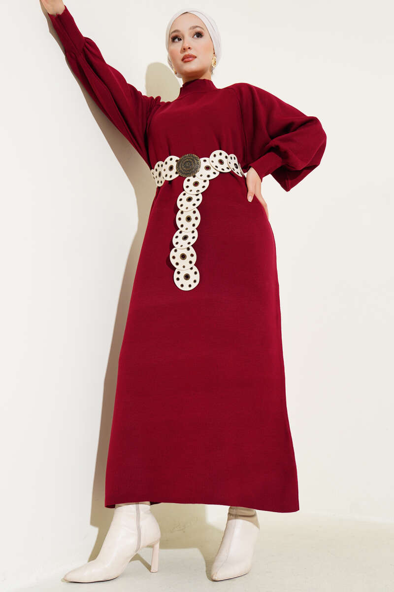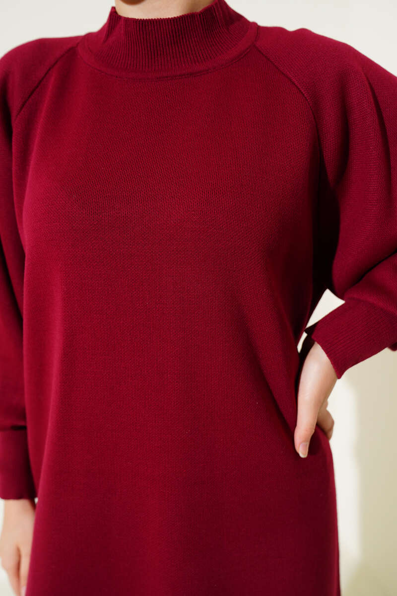 Kıvrım Örgülü Triko Elbise Yağ Yeşili