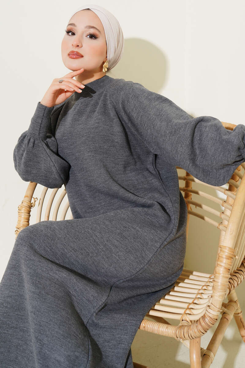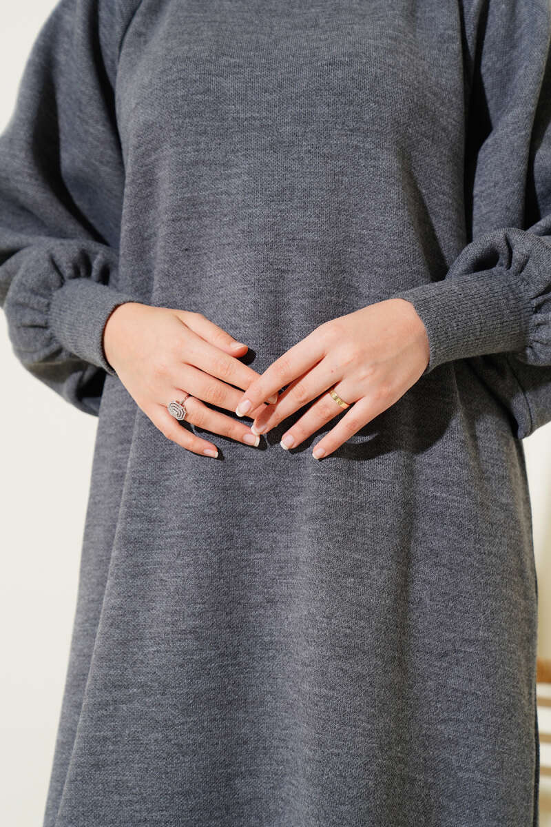 Kıvrım Örgülü Triko Elbise Yağ Yeşili